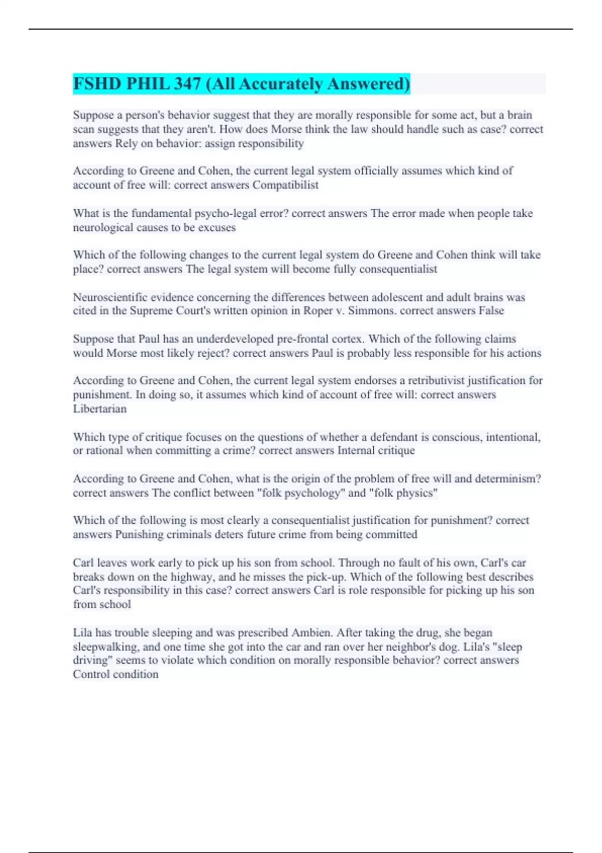 Phil 347 Midterm 1 (100% Accurate Answers) FSHD PHIL 347 (All Accurately Answered) FSHD PHIL PSY 347 Exam 2-University of Arizona (A+ Verified) 2024. PHIL 347 FINAL (WITH COMPLETE SOLUTIONS) Phil 347 FINAL (A+ GRADED ALREADY)