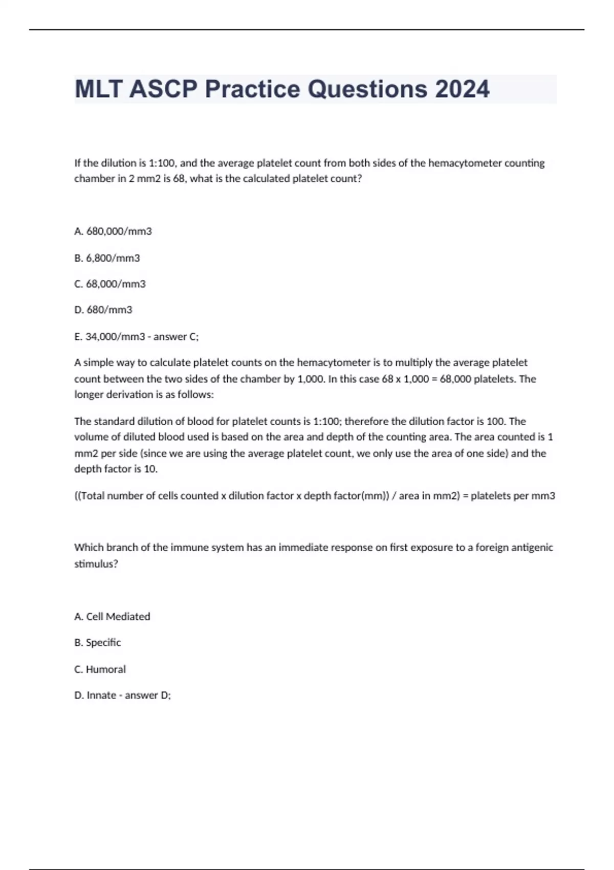 ASCP MLS TEST BANK SET 2024 IS A BUNDLE THAT COMPRISES ALL ELABORATED,REVIEWED AND WELL ARTICULATED QUESTIONS WITH DETAILED STUDY GUIDE ANSWERS. THE BUNDLE IS UPDATED THUS GUARANTEED PASS(A )