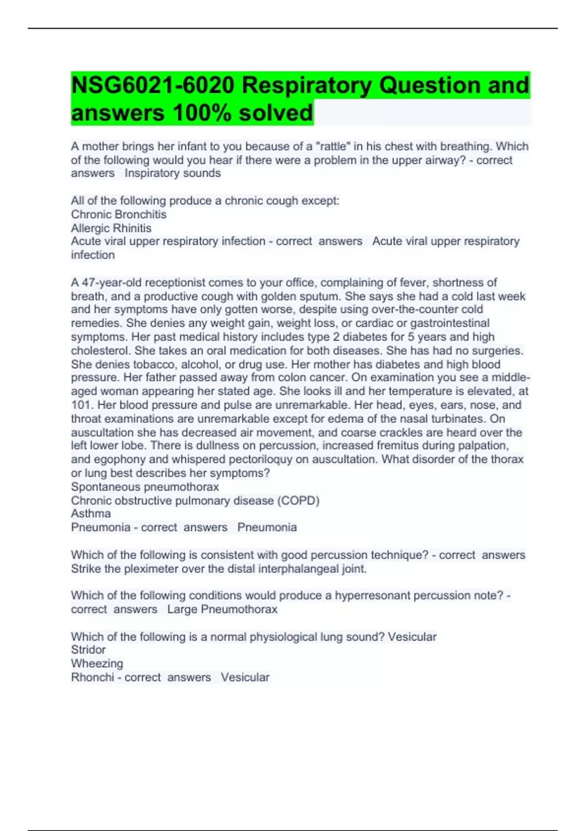 Exam (elaborations) NSG 434 Exam 1 QUESTIONS AND DETAILED ACCURATE ANSWERS 2023/2024 Exam (elaborations) NSG 434 cardio EXAM QUESTIONS AND VERIFIED ANSWERS 2023/2024 Exam (elaborations) NSG 434 Final Exam QUESTIONS AND CERTIFIED ANSWERS 2023/2024 Exam (elaborations) NSG 100 CH.1 Question and ACCURATE COMPLETE answers 100% correct 2023/2024