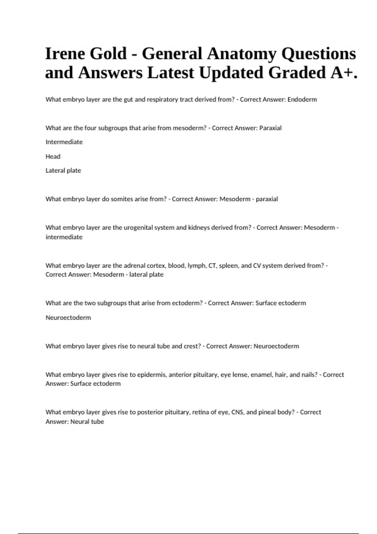 Irene Gold Boards Part 1 Pathology Exam With 100% Correct And Verified Answers, Irene Gold - General Anatomy Questions and Answers Latest Updated Graded A+ & Irene Gold Packet - General Anatomy Questions and Correct Answers.