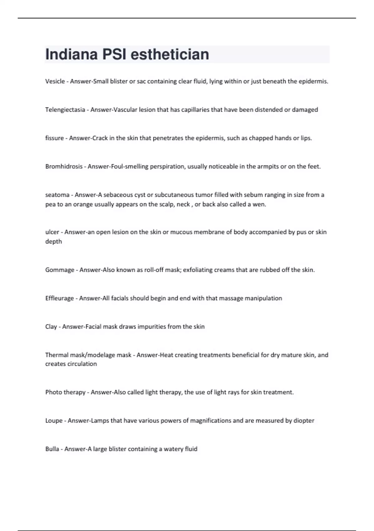Indiana PSI esthetician Questions with Answers (All Answers Correct)2024 update