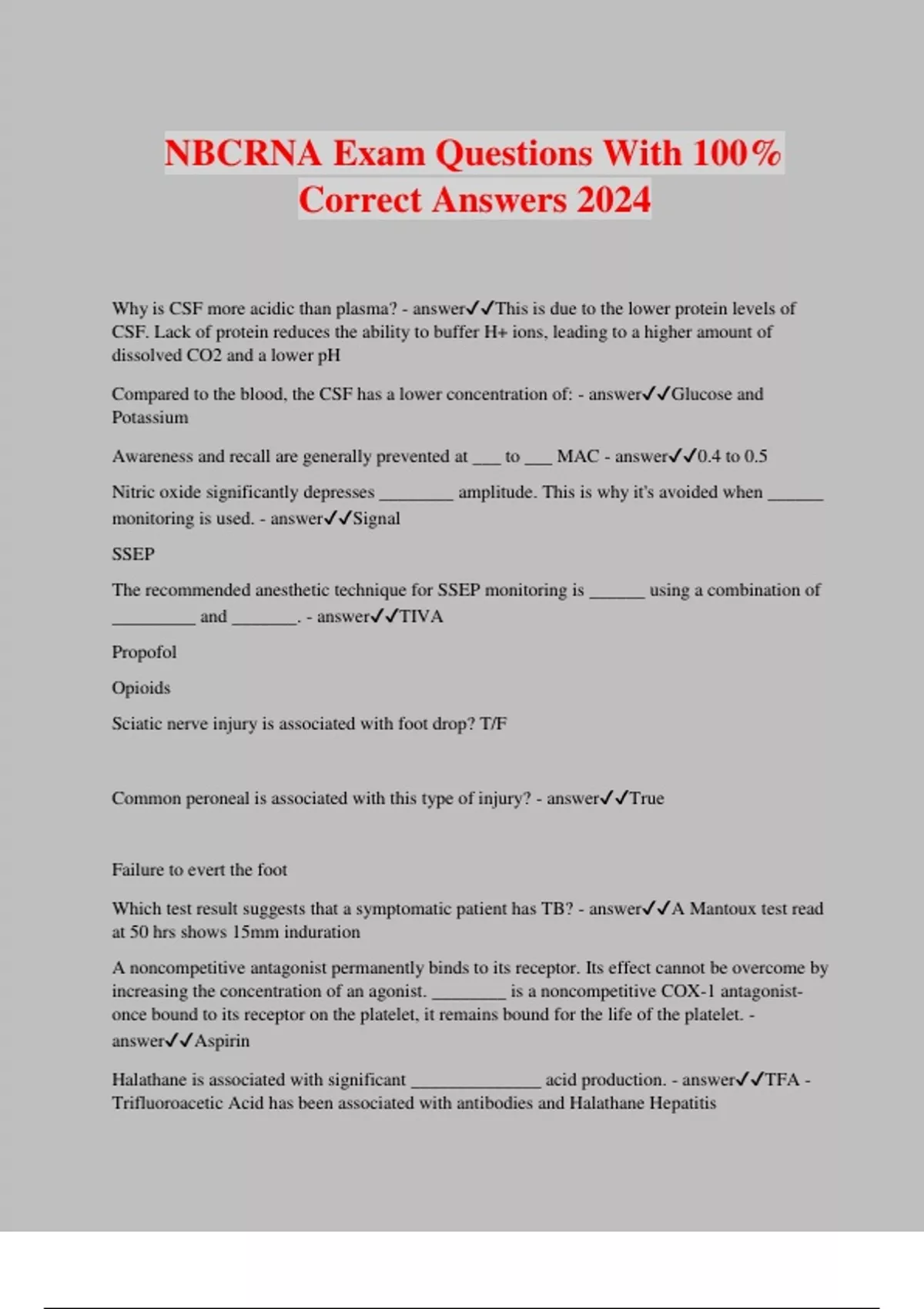 NBCRNA Exam Questions With 100% Correct Answers 2024
