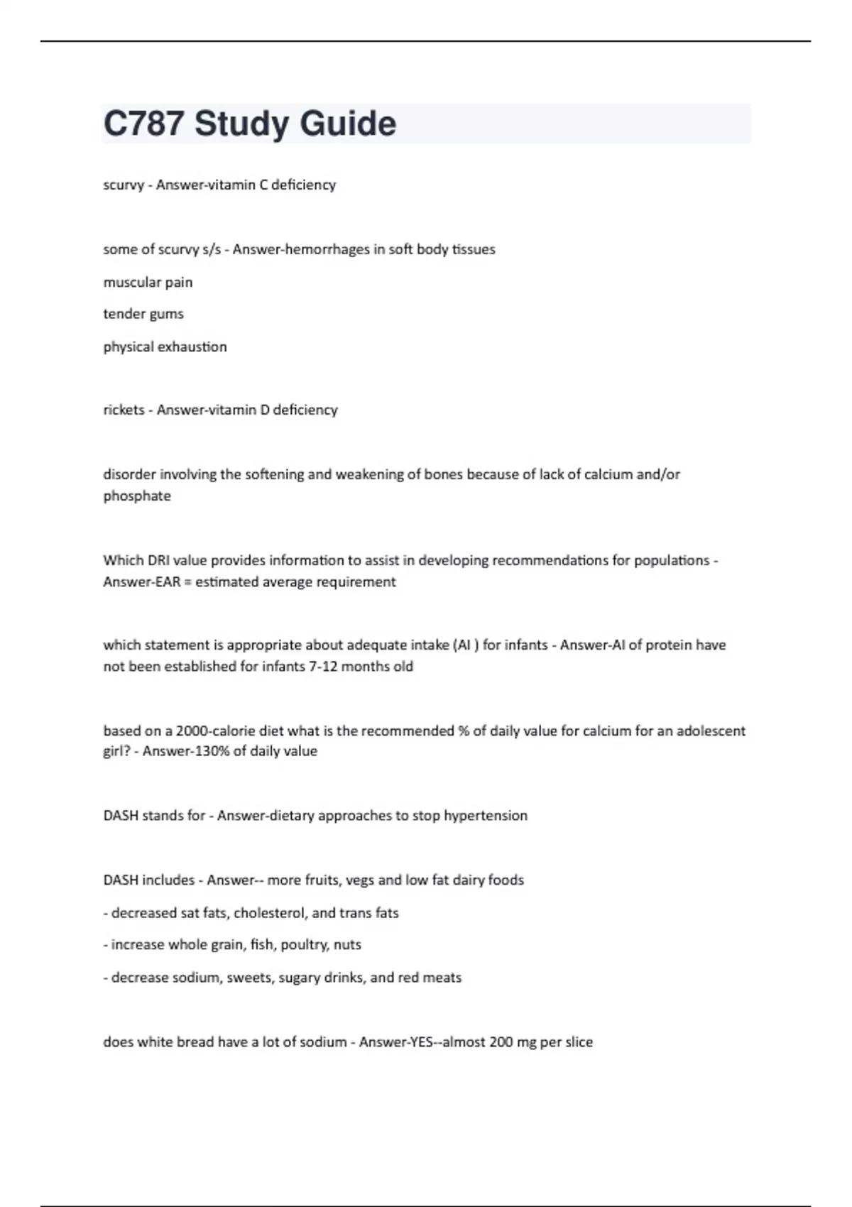 WGU nutrition C787 Questions With Verified Solutions Questions And Correct Answers |100% Verified |Guaranteed Success