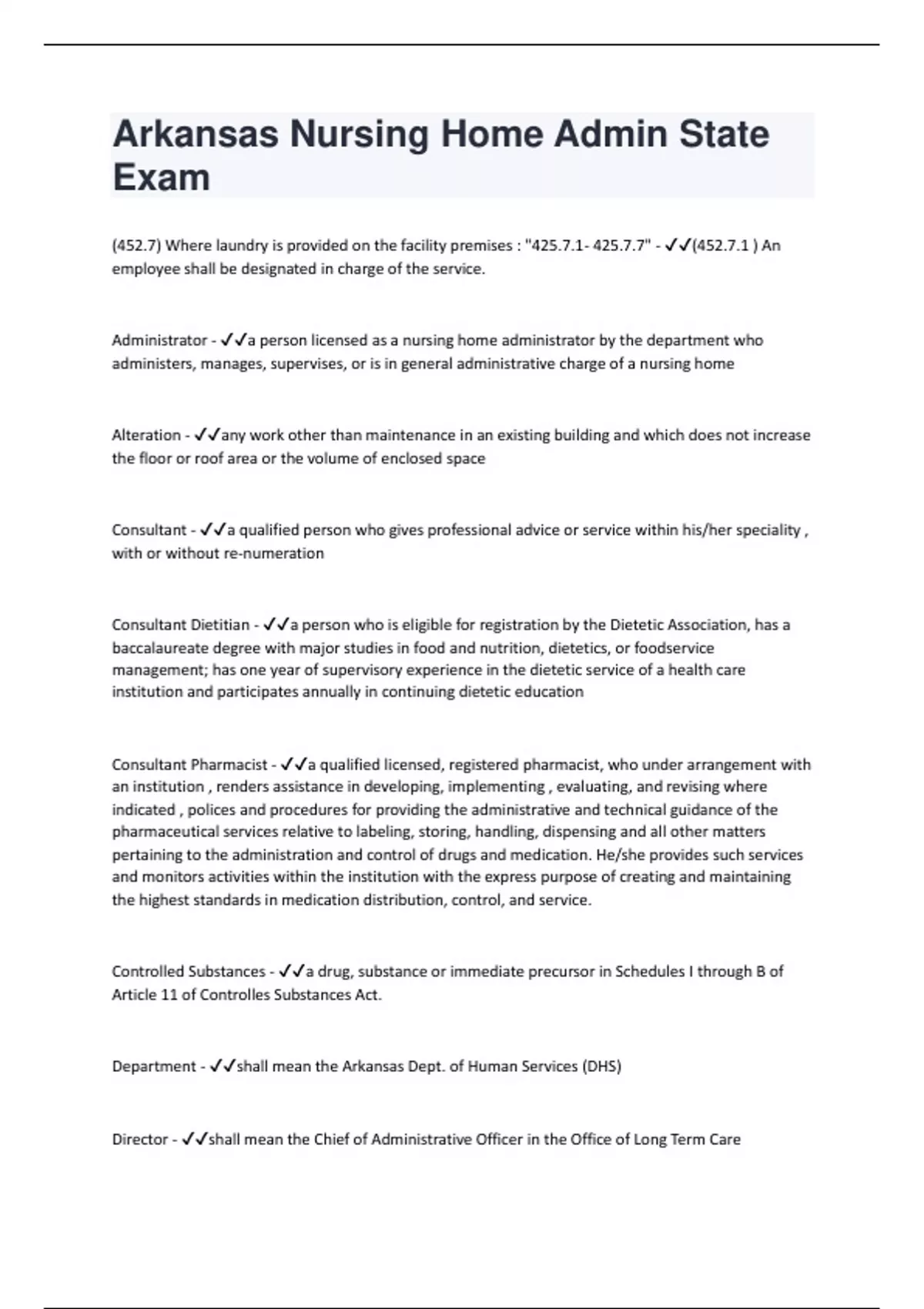 Arkansas Nursing Home Admin State Exam Questions And Answers Rated A+ New Update Assured Satisfaction