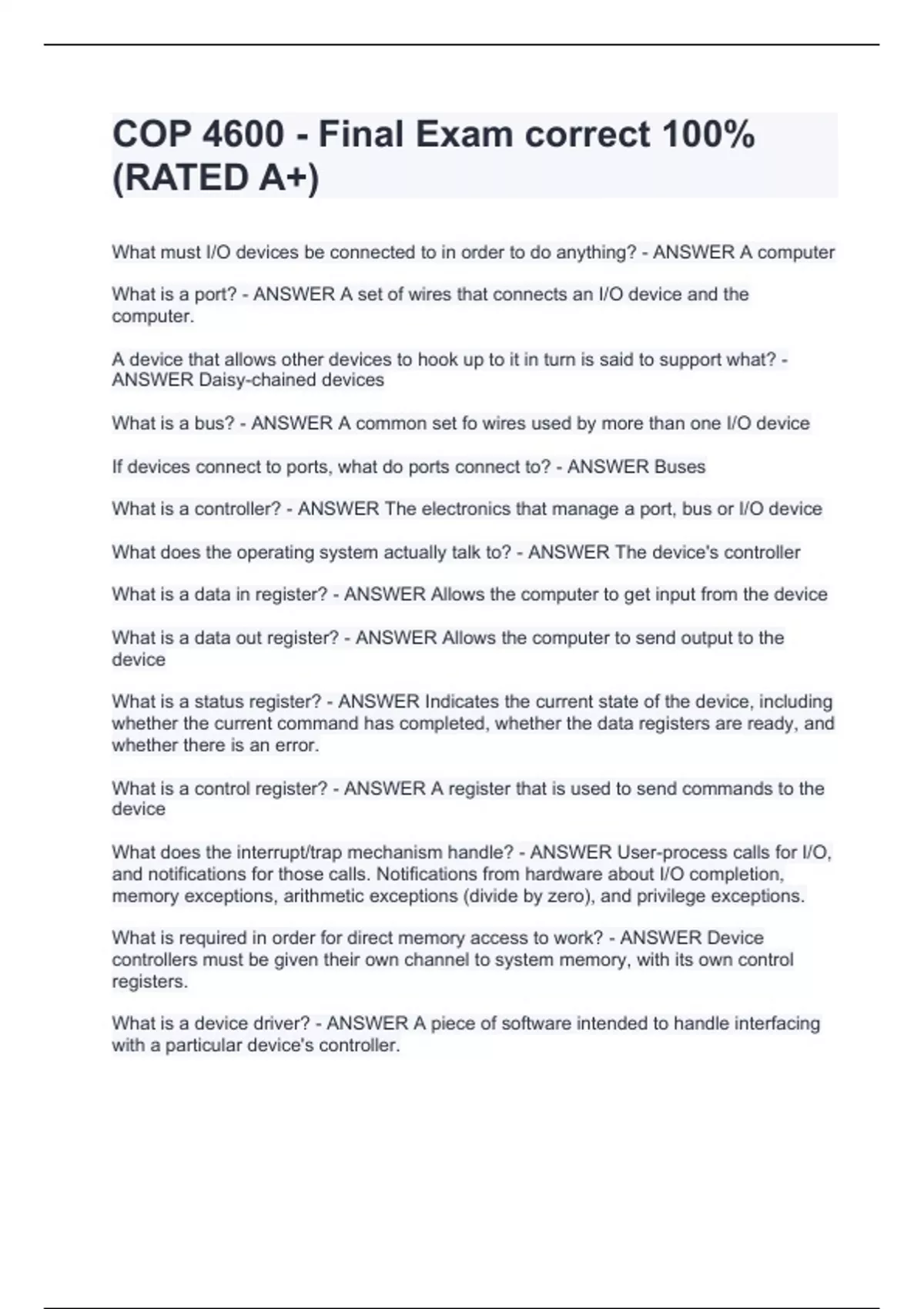 COP 4600 - FINAL EXAM BUNDLE(COMPLETE PACKAGE) Questions and Answers!COP 4600 - FINAL EXAM BUNDLE(COMPLETE PACKAGE) Questions and Answers!COP 4600 - FINAL EXAM BUNDLE(COMPLETE PACKAGE) Questions and Answers!COP 4600 - FINAL EXAM BUNDLE(COMPLETE PACKAGE) Questions and Answers!COP 4600 - FINAL EXAM BUNDLE(COMPLETE PACKAGE) Questions and Answers!COP 4