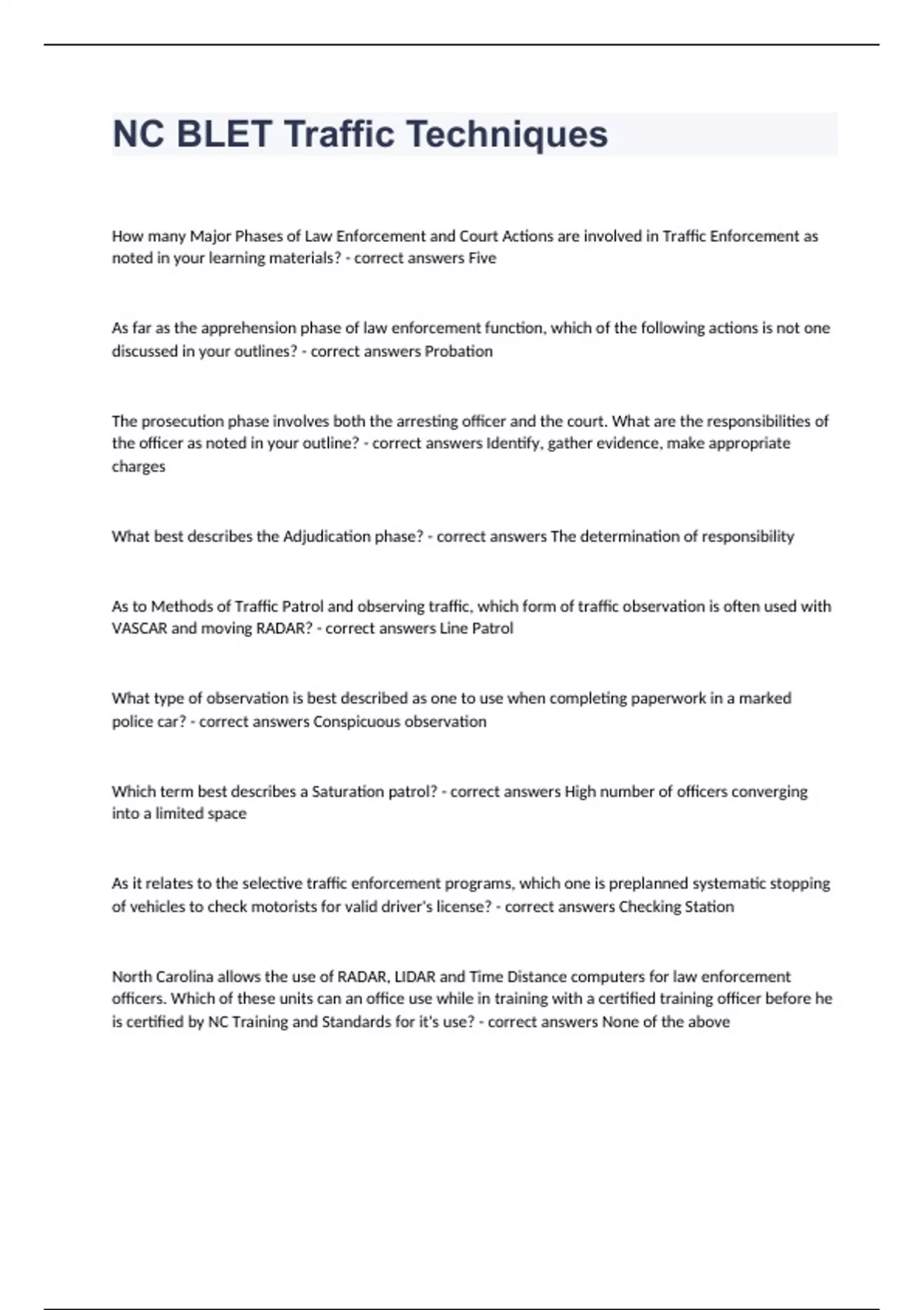 1 Exam (elaborations) 2020 NC BLET Communication Skills question n answer 2 Exam (elaborations) 2020 NC BLET Ethics updated to pass 3 Exam (elaborations) 2020 NC BLET: Physical Training fully solved 4 Exam (elaborations) Criminal investigation NC BLET with 100% correct answers 2023/2024