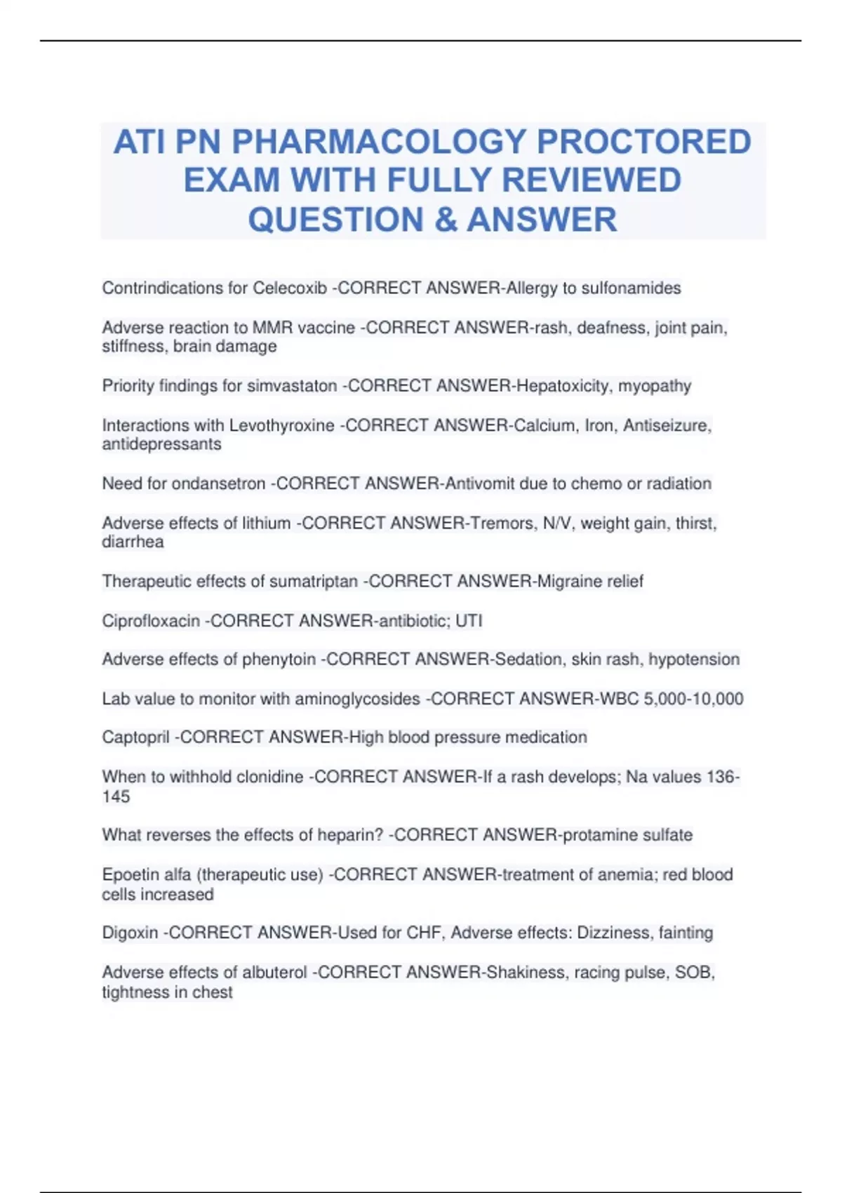ATI PHARMACOLOGY PN LATEST EXAM| A GRADED 2024 CHAPTER 1 PHARM ATI PROCTORED EXAM QUESTION & ANSWERS GUARANTEE PASS ELABORATED ATI PHARM REVISION TEST 2024 PN PHARMACOLOGY PRACTICE EXAM WITH QUALIFIED ANSWERS A GRADED PN PHARMACOLOGY UPGRADED QUESTION AND VERIFIED ANSWERS PN PHARMACOLOGY MULTI VERSION QUESTION & CORRECT ANSWERS ATI PHAR