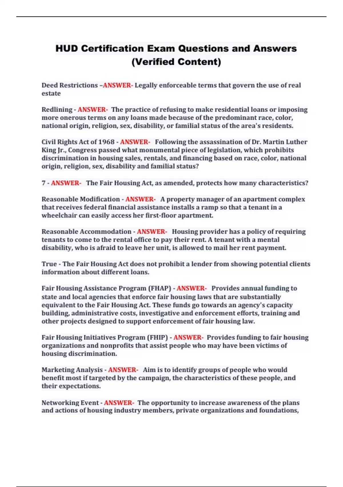 HUD Exam Fair Housing Exam Questions & Answers 100% Correct