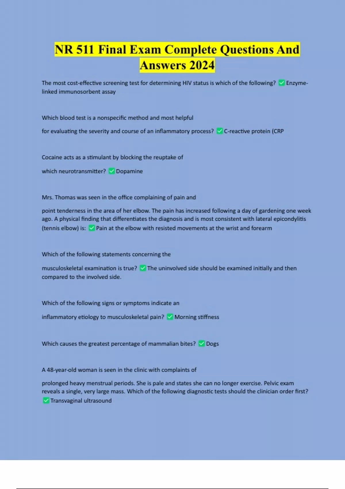 NR511 Final Practice Exam With Verified Package Deal Graded A+