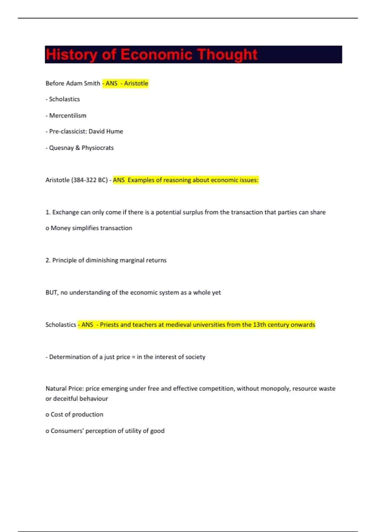 History of Economic Thought
