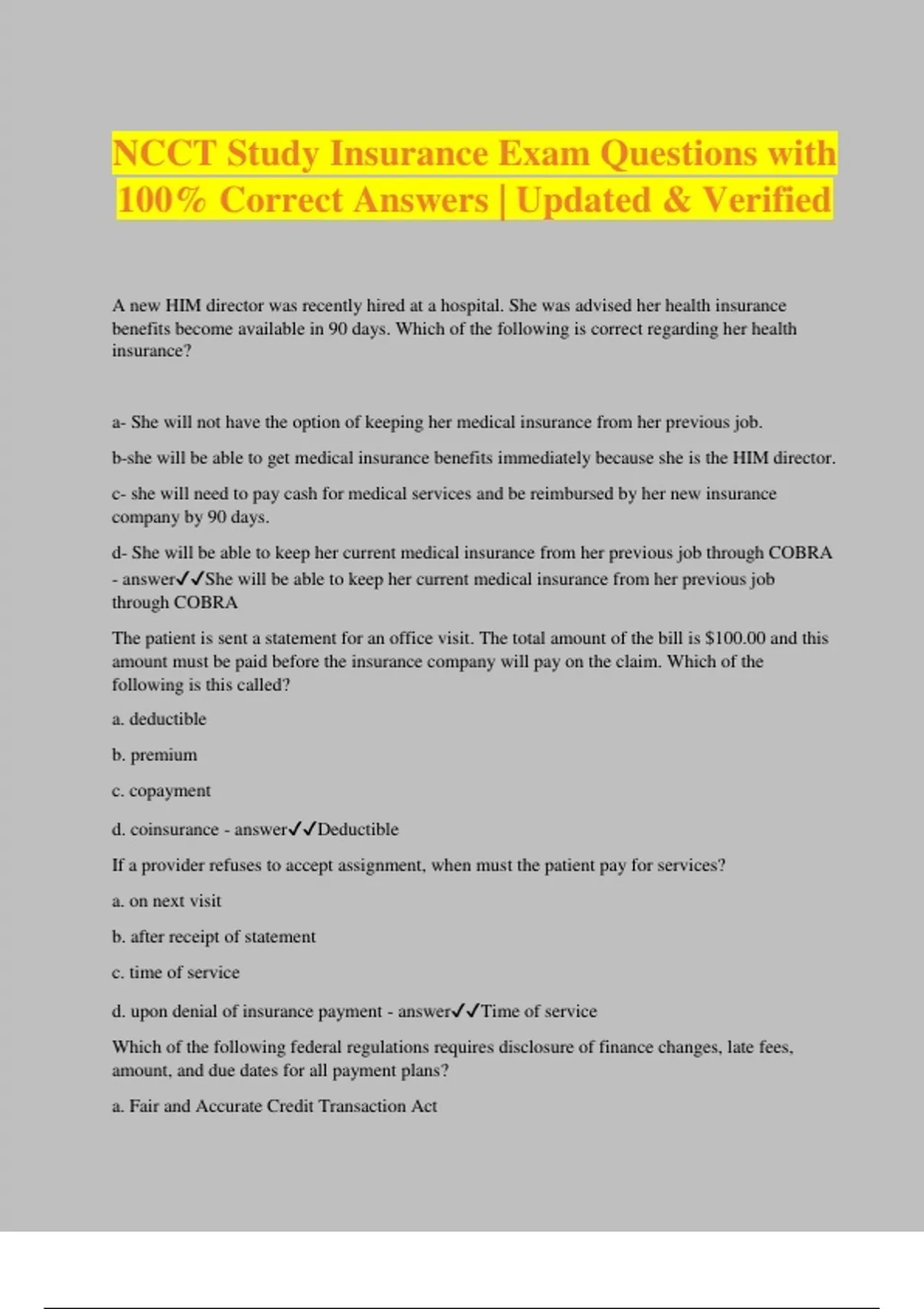 NCCT Study Insurance Exam Questions with 100% Correct Answers | Updated & Verified