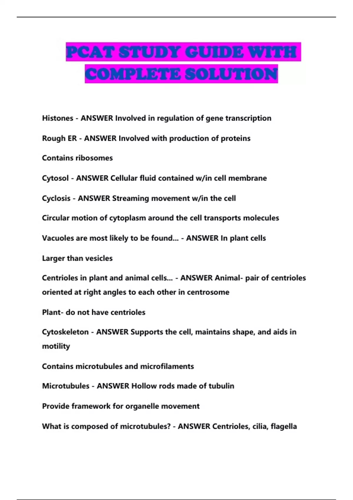 PCAT STUDY GUIDE WITH COMPLETE SOLUTION