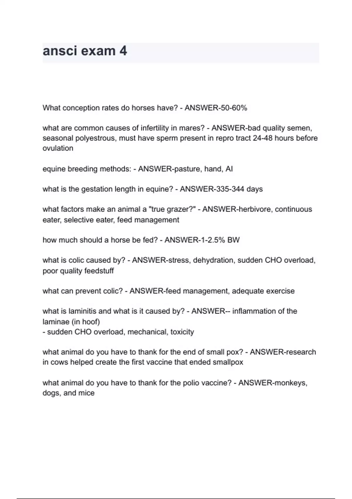 ANSC 4100 Exam questions and answers