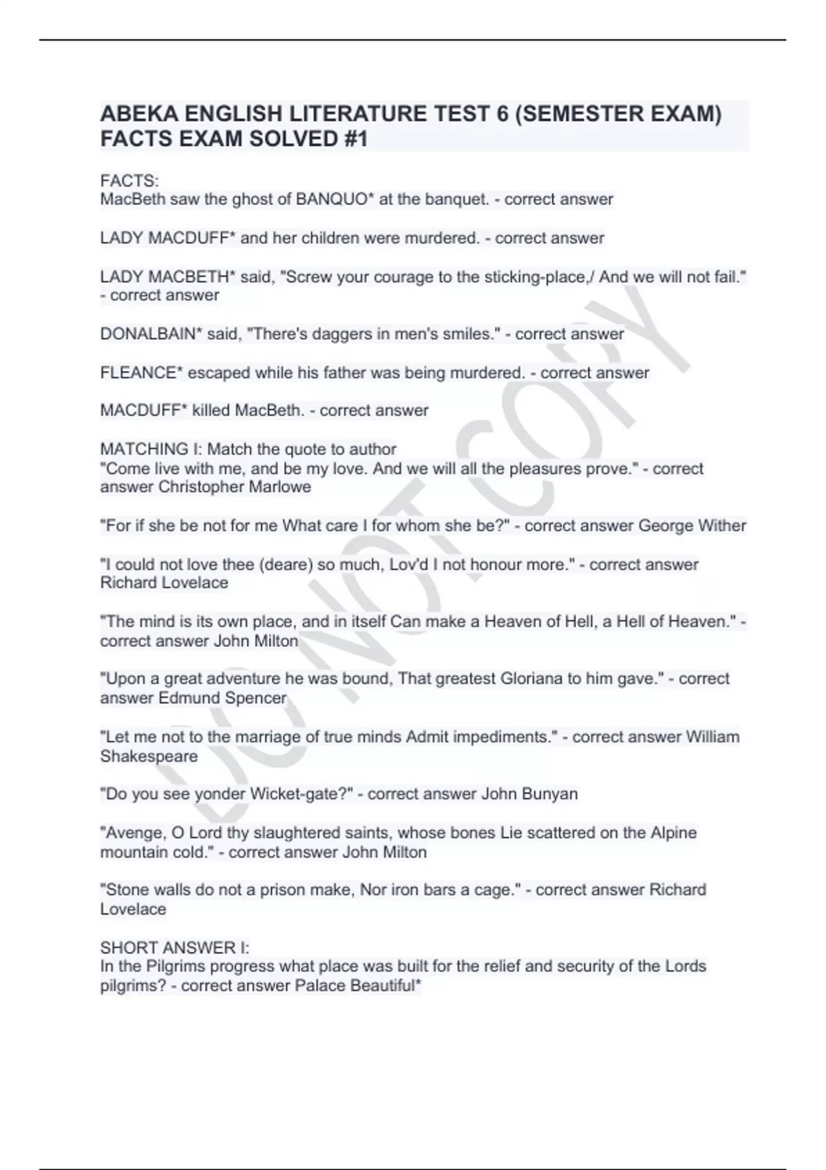 ABEKA ENGLISH LITERATURE TEST 6 EXAM BUNDLE QUESTIONS AND ANSWERS FULLY VERIFIED AND APPROVED 100%
