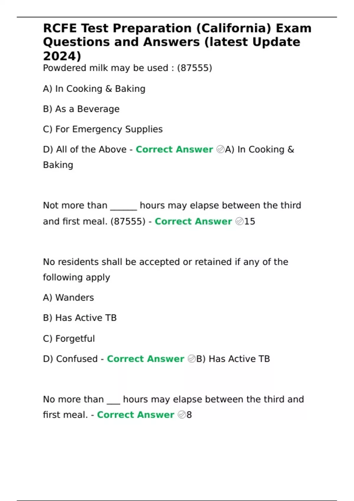 RCFE California Exam Questions Pacakge