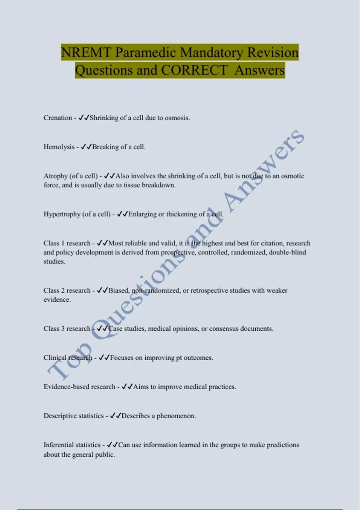 Nremt paramedic Top Questions and CORRECT Answers
