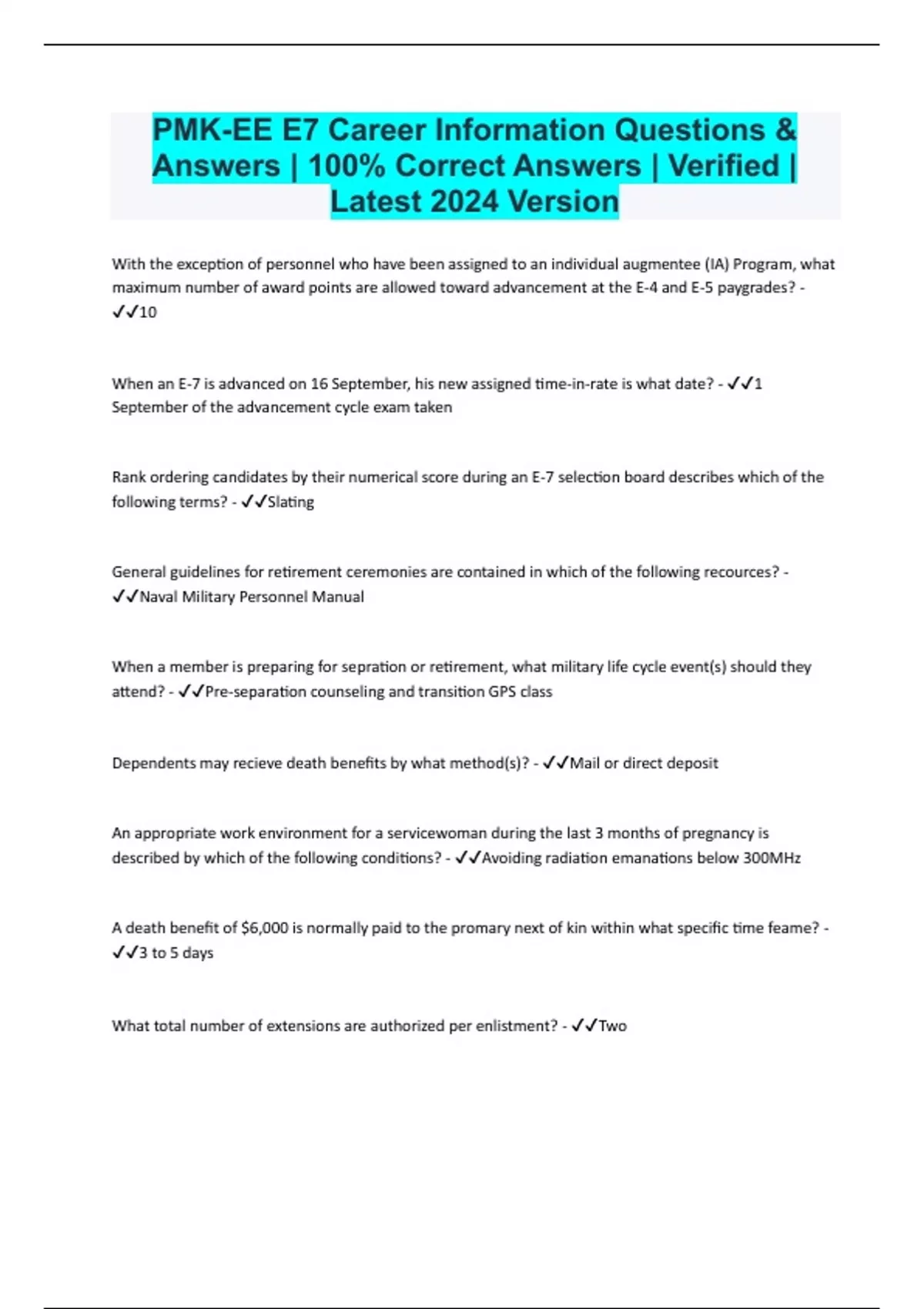PMK-EE E7 Career Information Questions & Answers | 100% Correct Answers | Verified | Latest 2024 Version