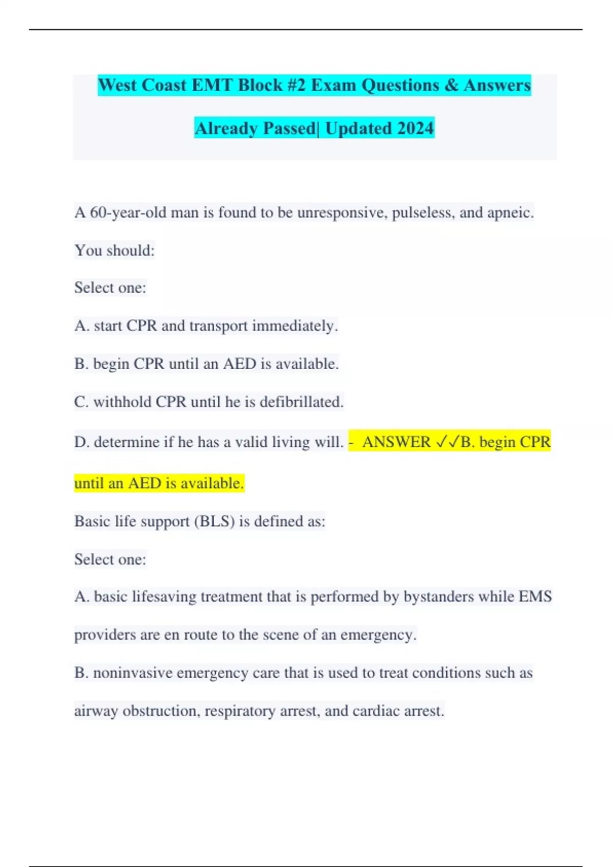 West Coast EMT Block #2 Exam Questions & Answers Already Passed| Updated 2024