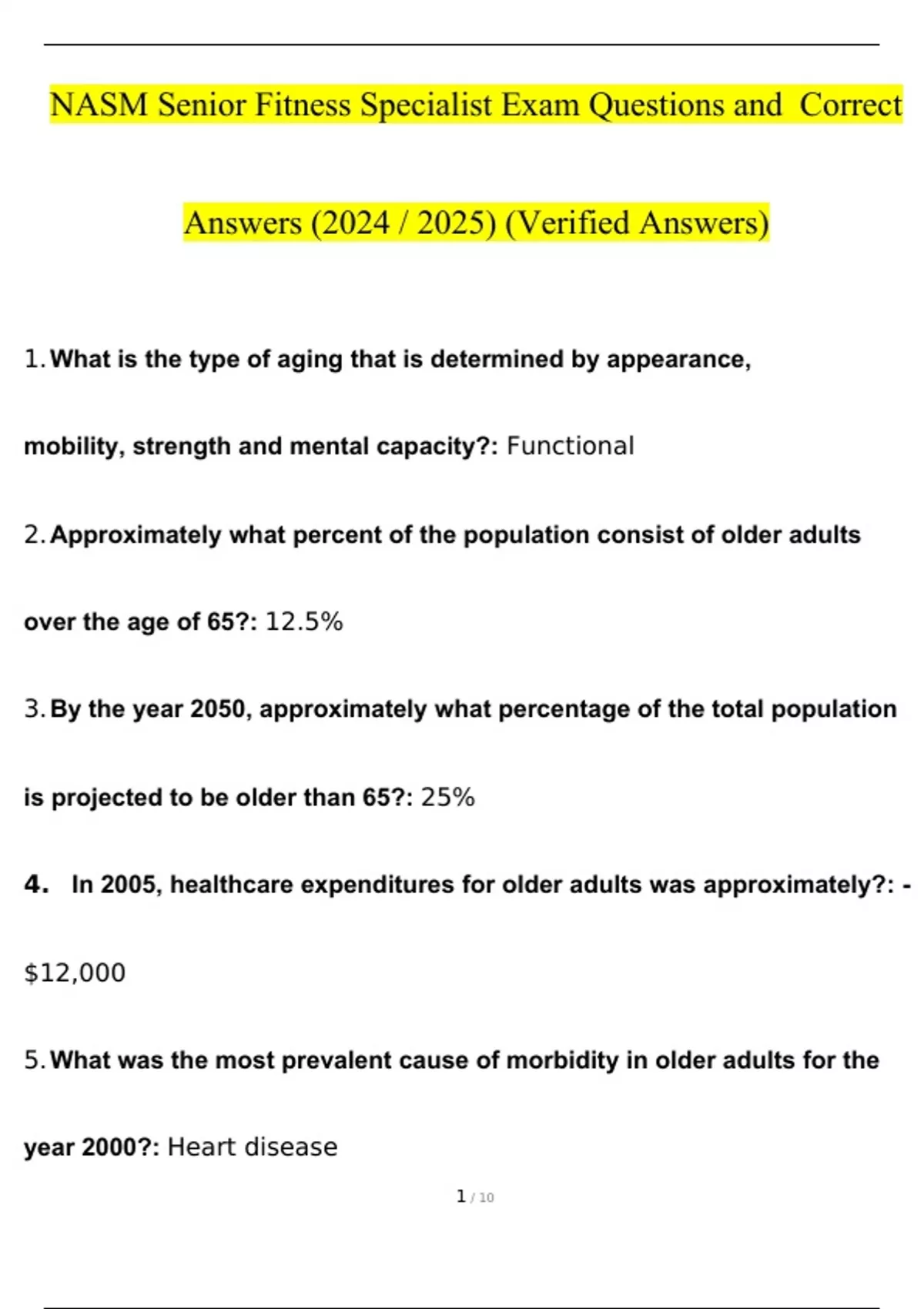 NASM SENIOR FITNESS SPECIALIST STUDY SET EXAM LATEST BUNDLE PACK SOLUTION (VERIFIED)