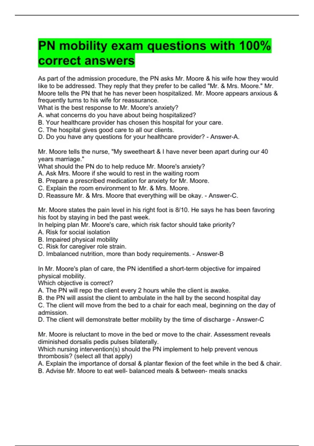 Case Study 6-Mobility Exam Questions and Answers 2 Exam (elaborations) FUND-HESI mobility exam questions with verified answers 3 Exam (elaborations) HESI A2: MOBILITY PREP EXAM QUESTIONS AND ANSWERS 4 Exam (elaborations) HESI Case Study: Mobility Exam Questions with Correct Answers 5 Exam (elaborations) HESI Mobility Case Study Exam Question an