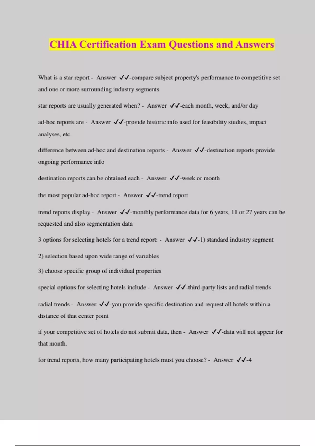 CHIA Certification Exam Questions and Answers