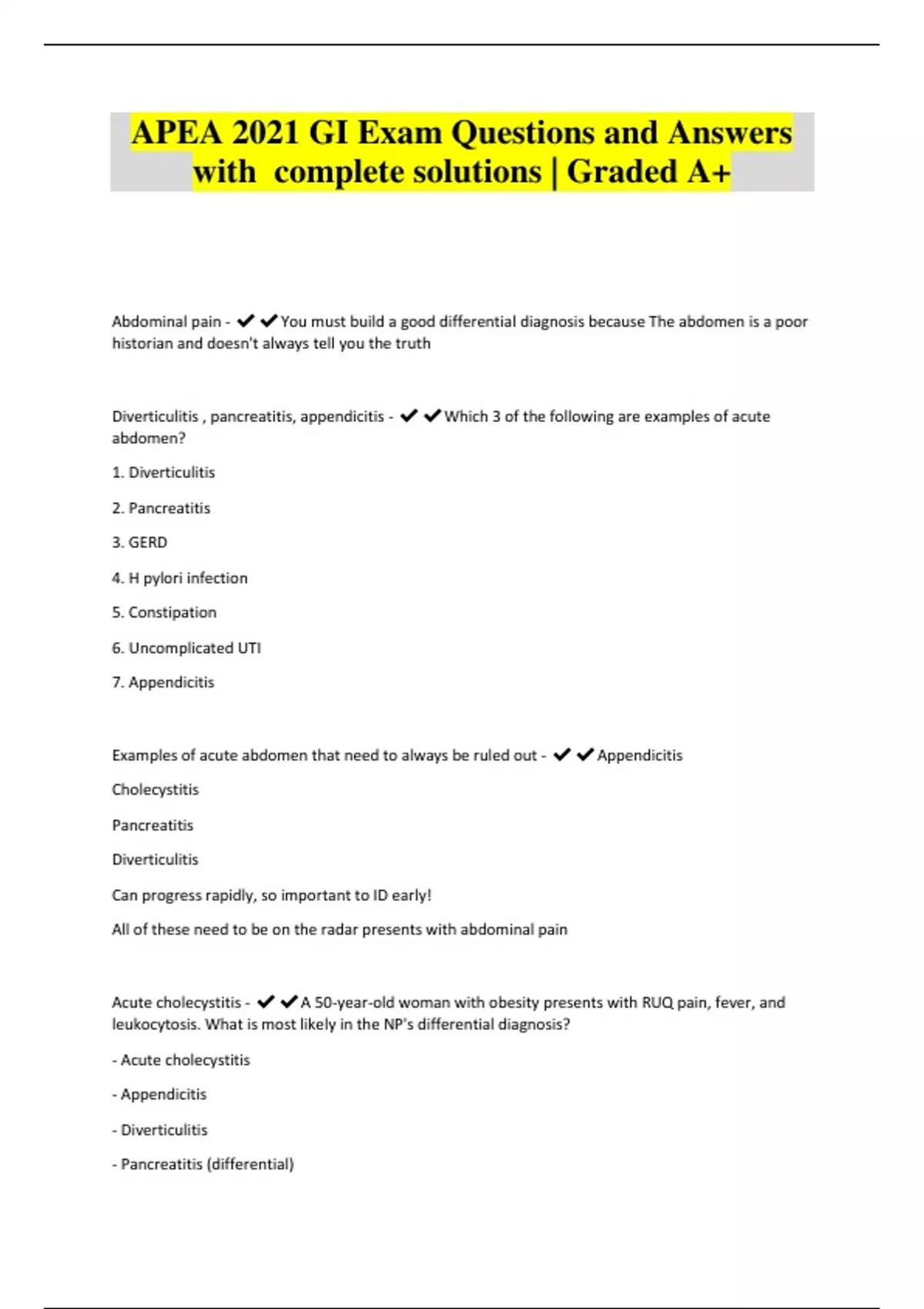 APEA GASTRO Exam Questions and Answers with complete solutions | Graded A+