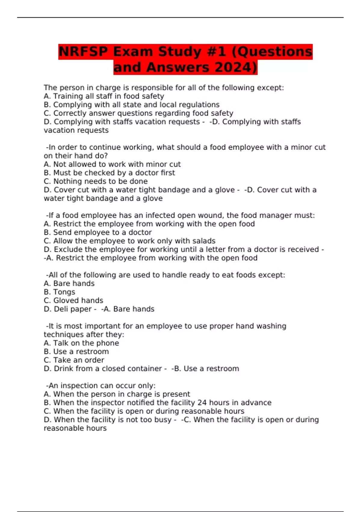 NRFSP Exam Study #1 (Questions and Answers 2024)