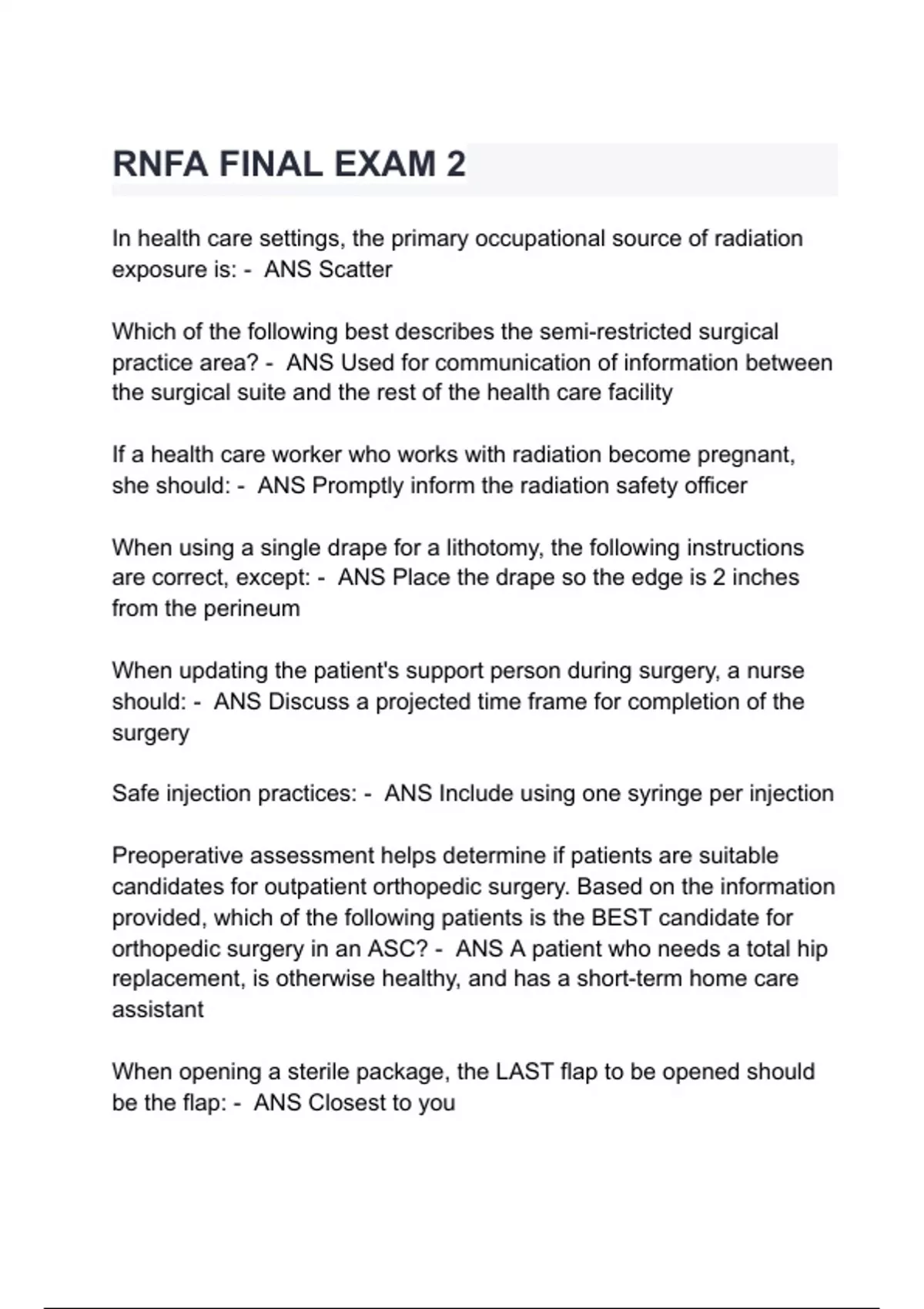 RNFA FINAL EXAM 2 Questions with correct Answers 2024/2025( A+ GRADED 100% VERIFIED).