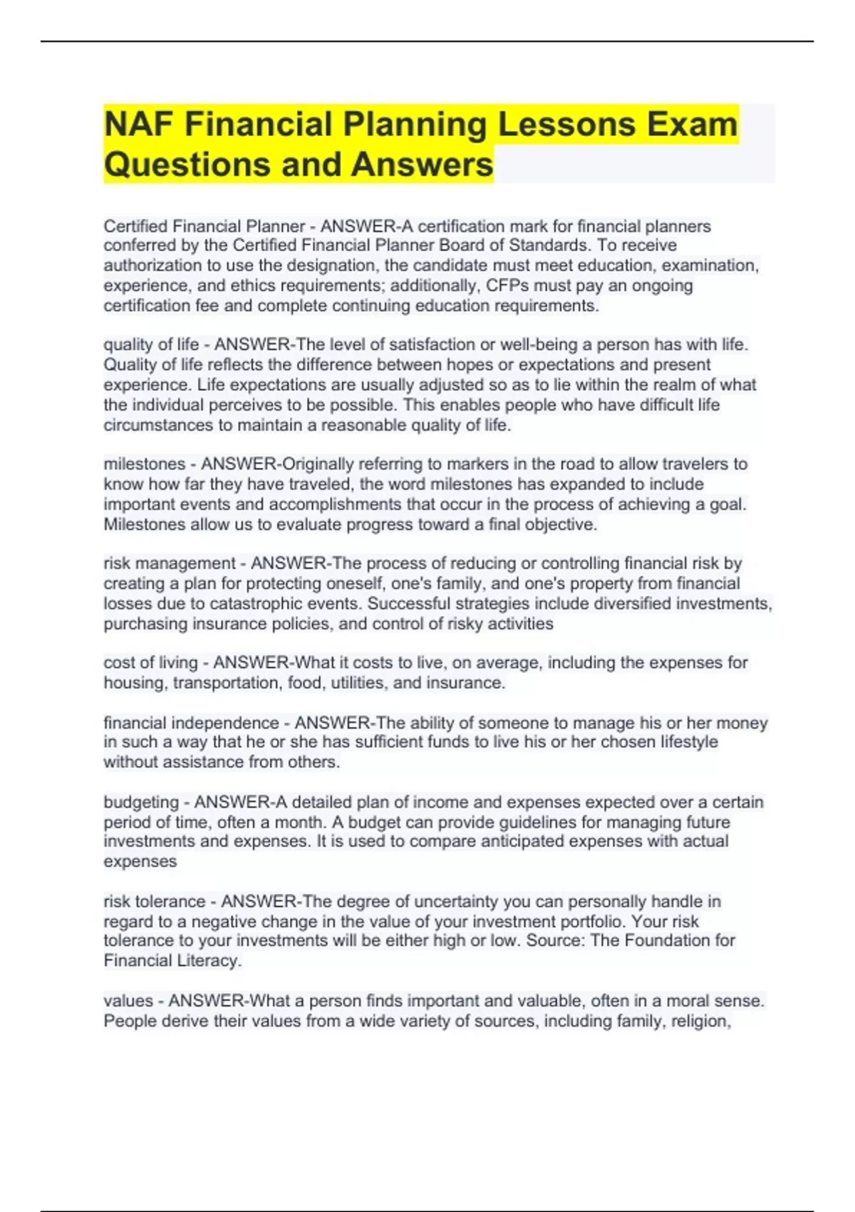 Exam (elaborations) Choosing a Financial Advisor latest Update Exam (elaborations) CFP-Financial Planning Test Guide Questions and Answers Exam (elaborations) CFP Total Test Exam Questions with 100% Correct Answers Exam (elaborations) CFP General Principles of Financial Planning Exam Guide Questions and Answers Exam (elaborations) CFP Gene