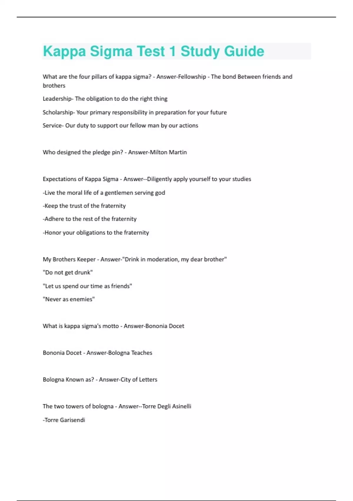 Kappa Sigma Pledge Exam Questions And Complete Answers