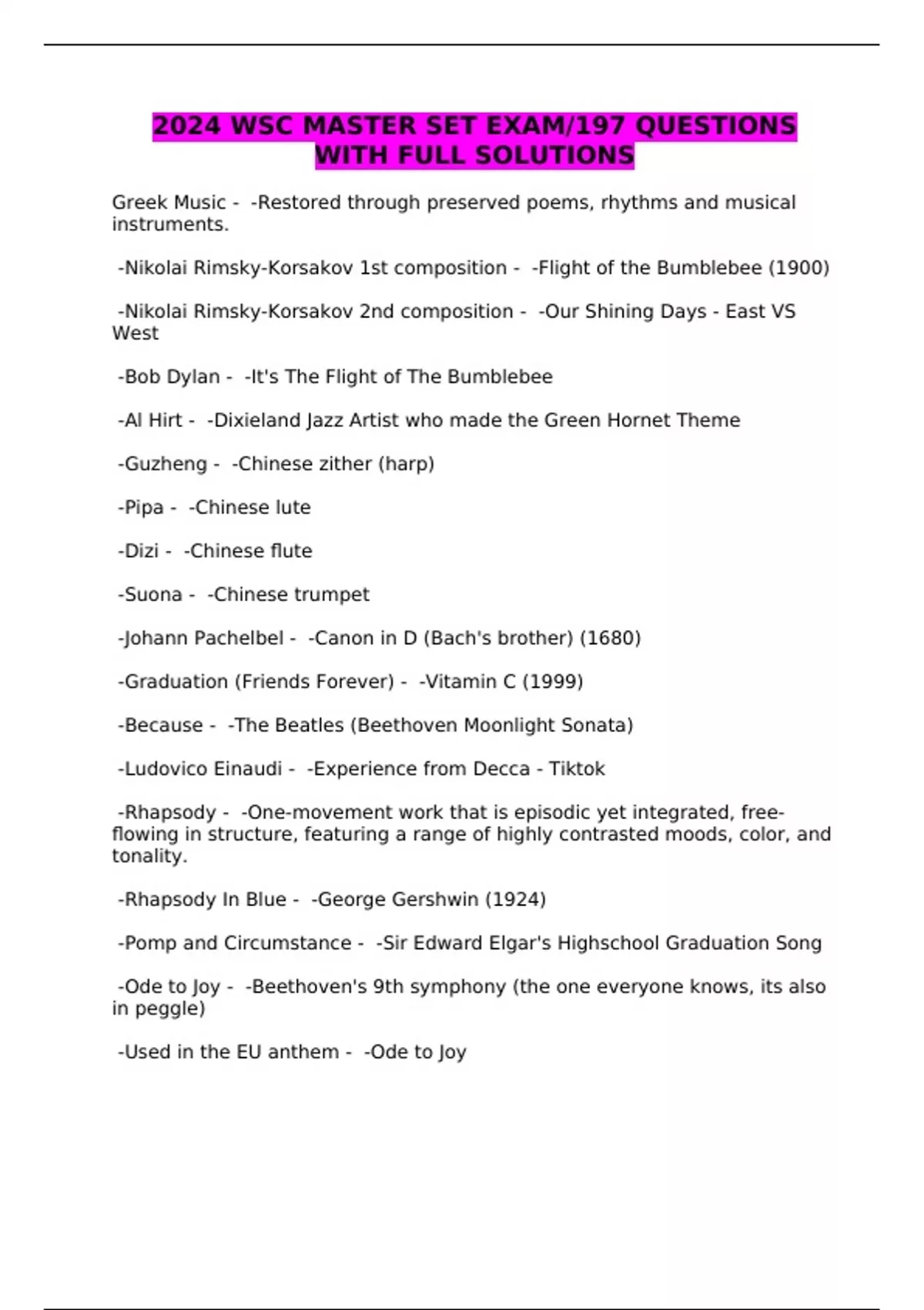 2024 WSC MASTER SET EXAM/197 QUESTIONS WITH FULL SOLUTIONS