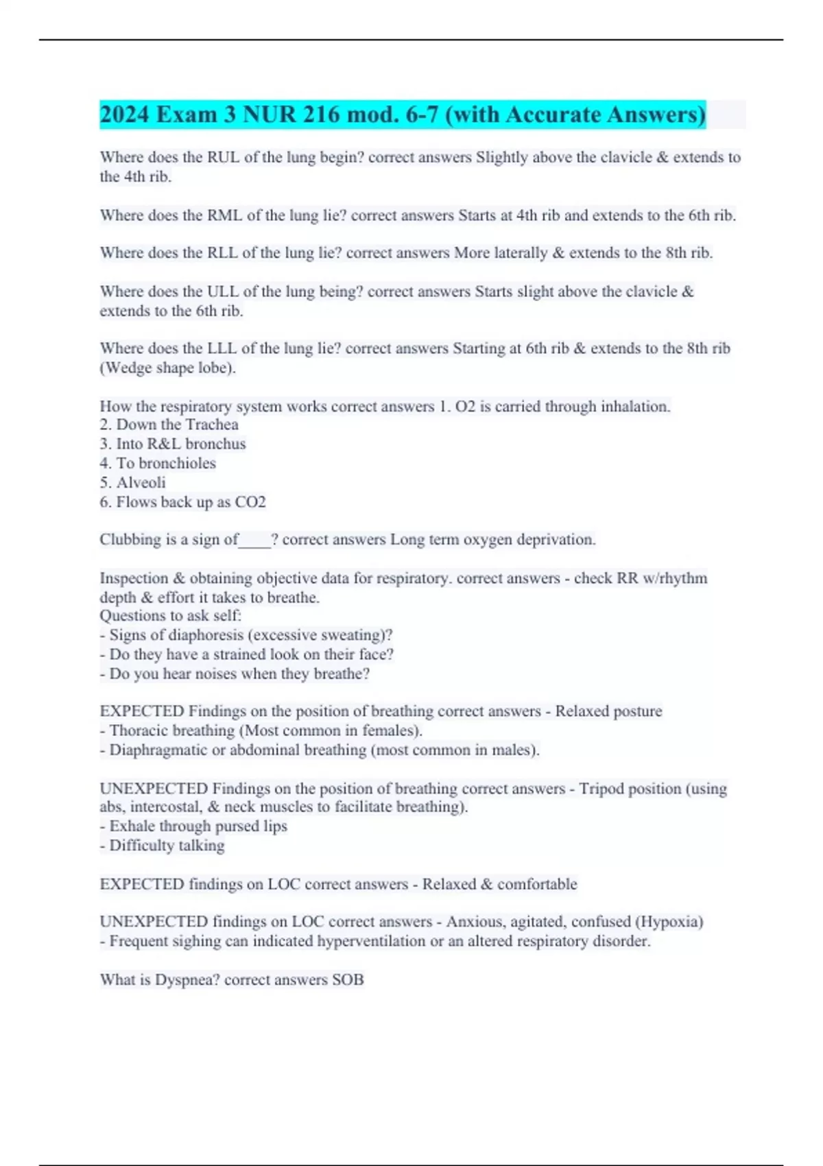 NUR 216 || 100% Accurate