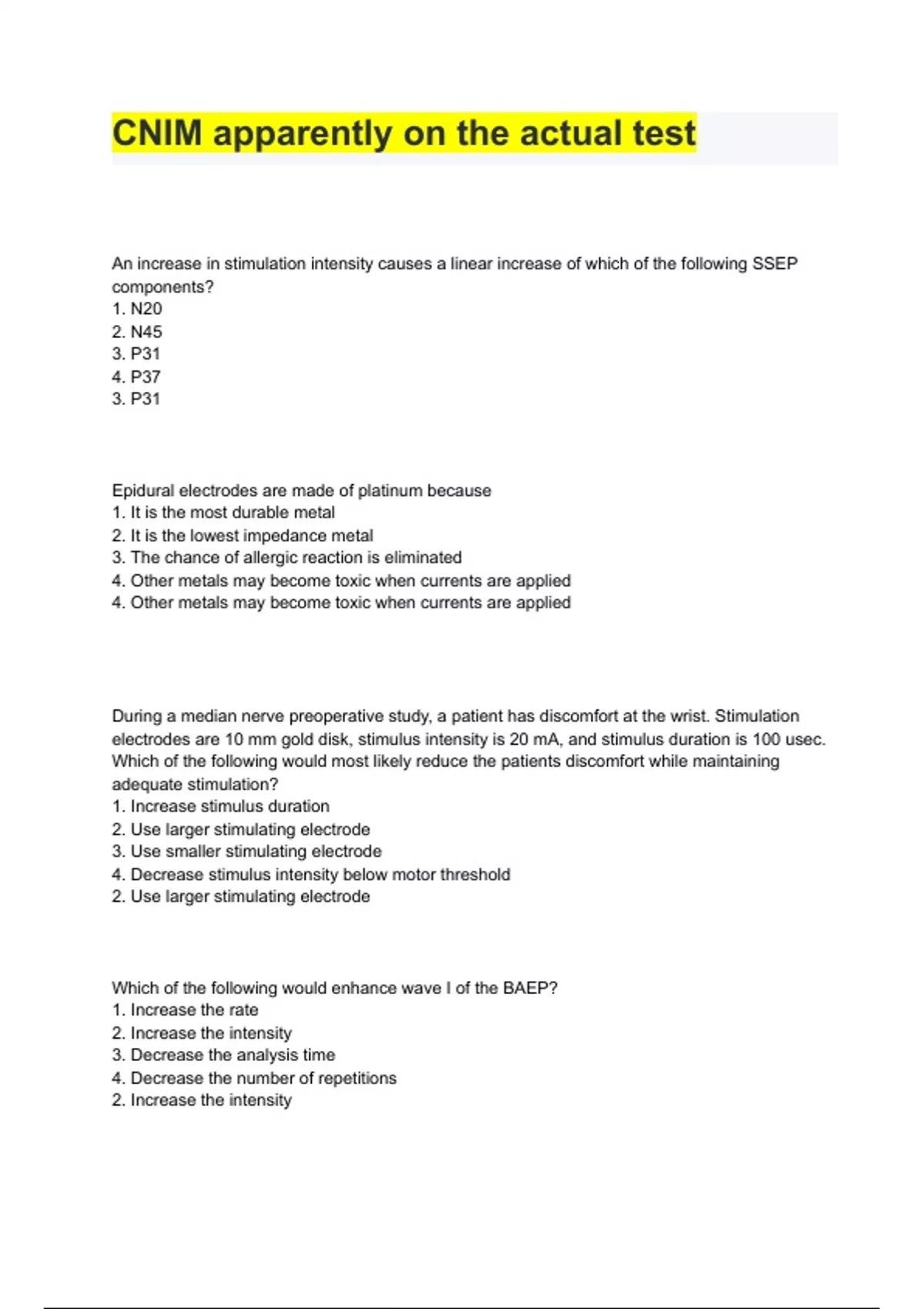 CNIM PRACTICE QUESTIONS.