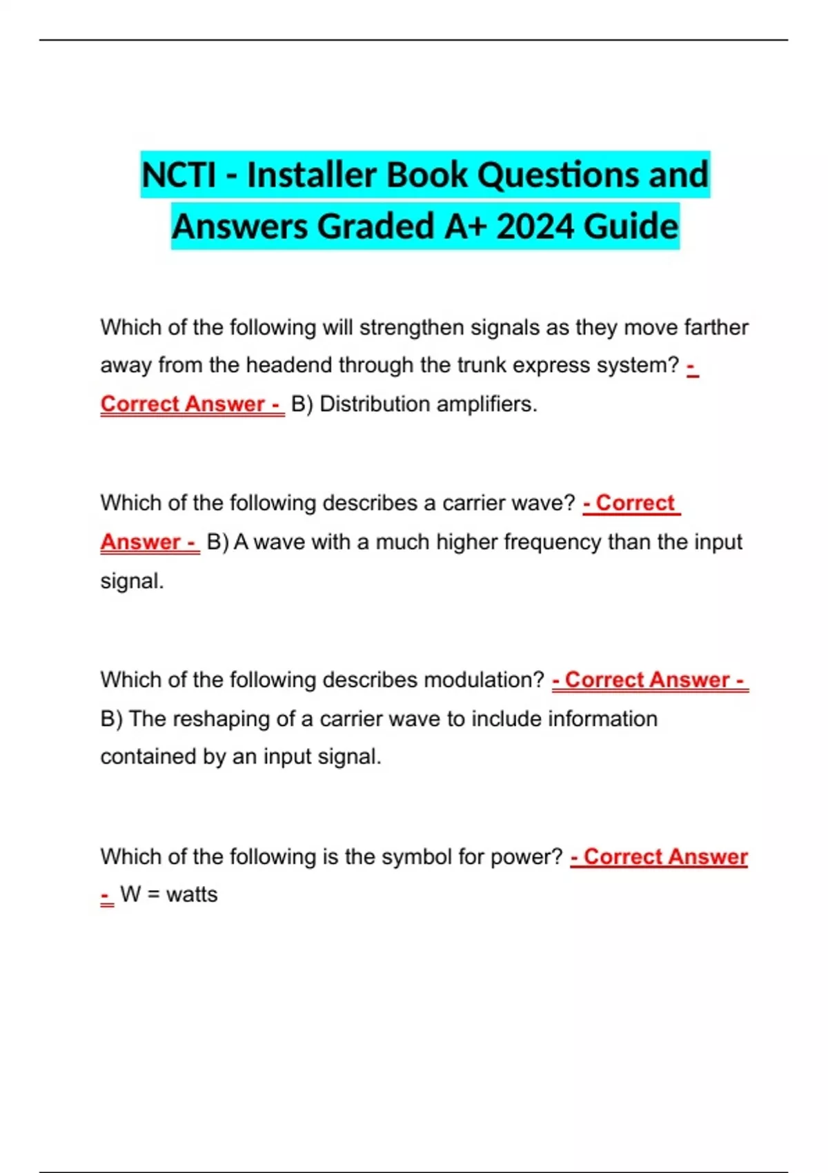 BUNDLE for NCTI Exam | Study Questions and Verified Answers Rated A+ |Latest 2024