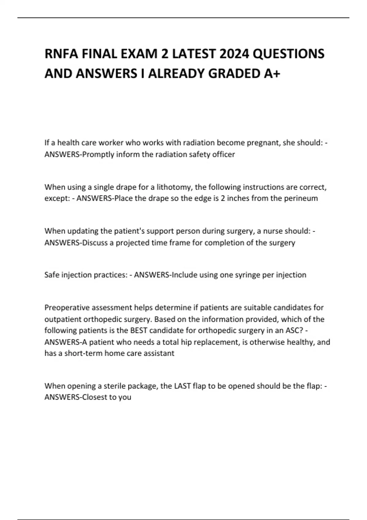 RNFA FINAL PRACTICE LATEST ,RNFA FINAL EXAM 2 ,RNFA FINAL EXAM AND RNFA MASTER EXAM 2024 QUESTIONS AND ANSWERS I ALREADY GRADED A+