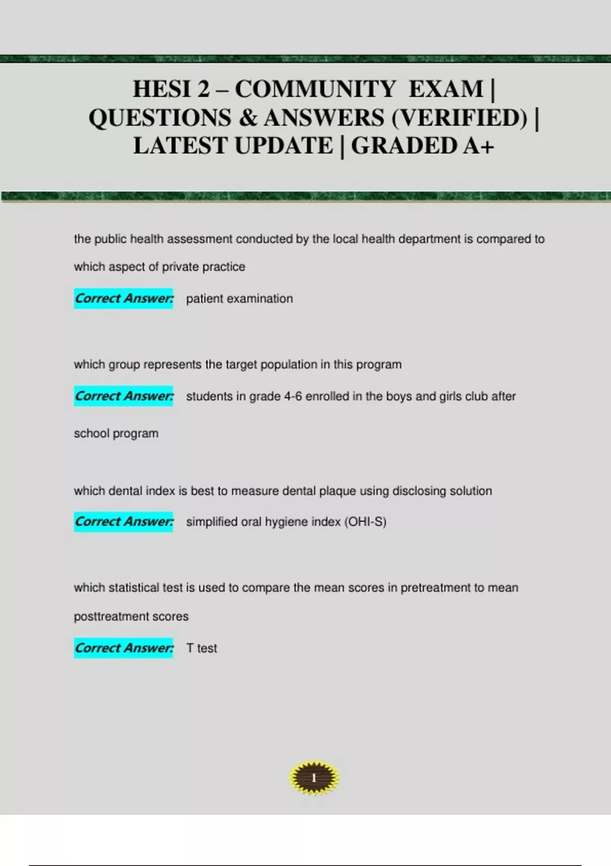 COMMUNITY HEALTH PROCTORED ATI EXAM PACK | QUESTIONS & 100% CORRECT ANSWERS (VERIFIED) | LATEST UPDATE | GRADEA