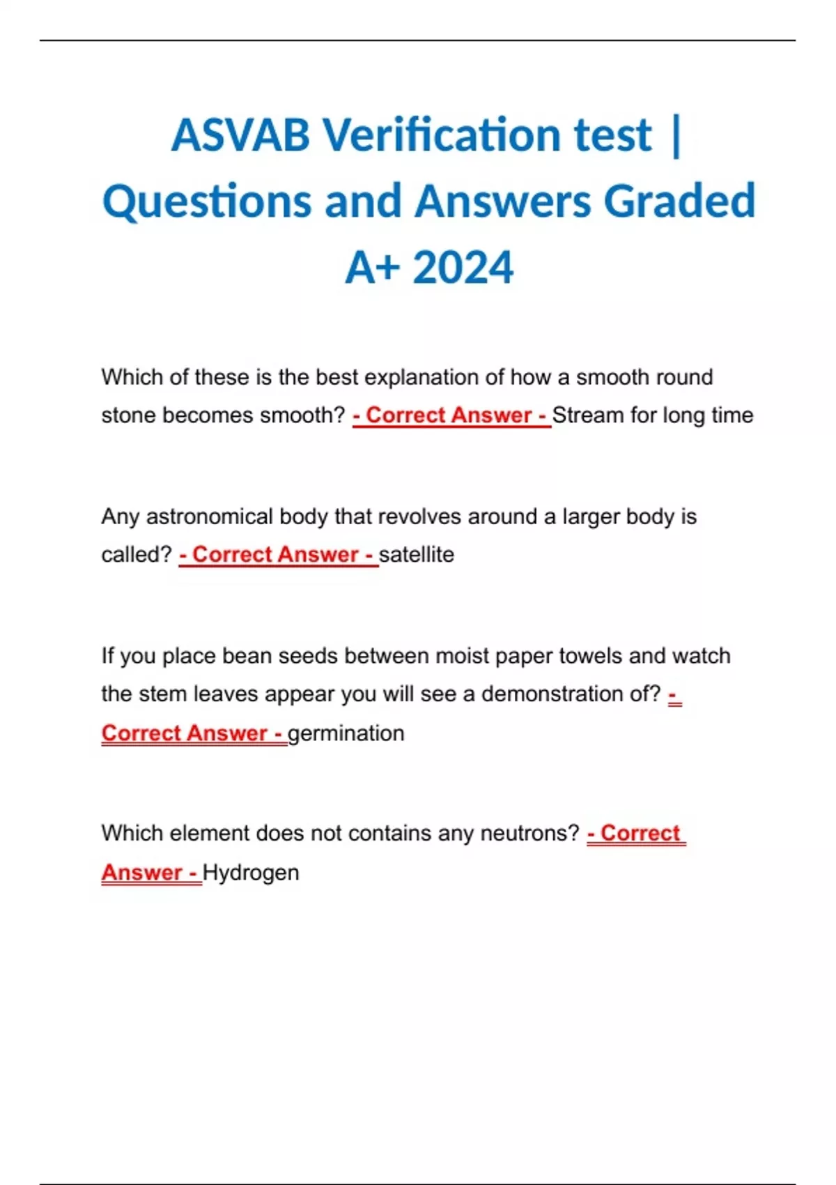 ASVAB Verification test | Questions and Answers Graded A+ 2024