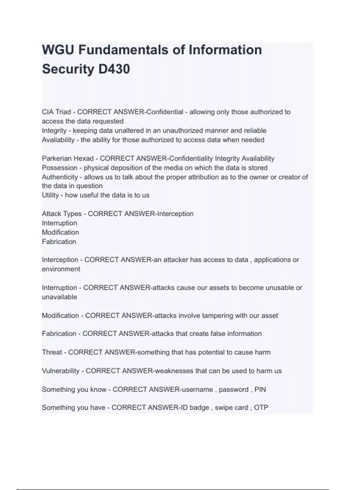 WGU C836 - Fundamentals of Information Security test /D430: Fundamentals of Information Security - PASSED bundle