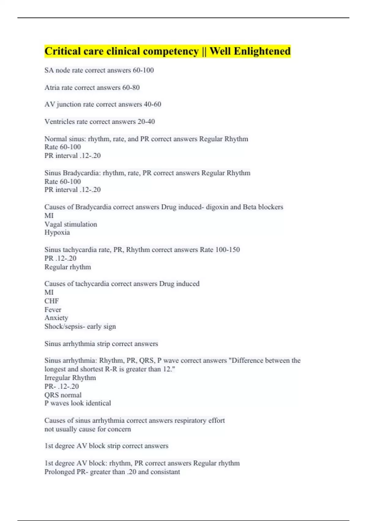 Critical care clinical competency || Well Enlighten