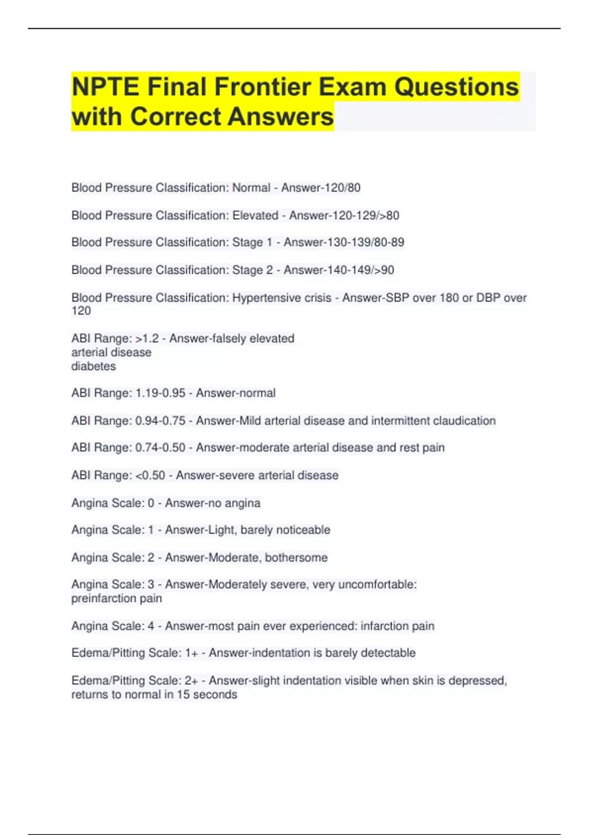 BUNDLE FOR NPTE Exam Questions with Correct Answers