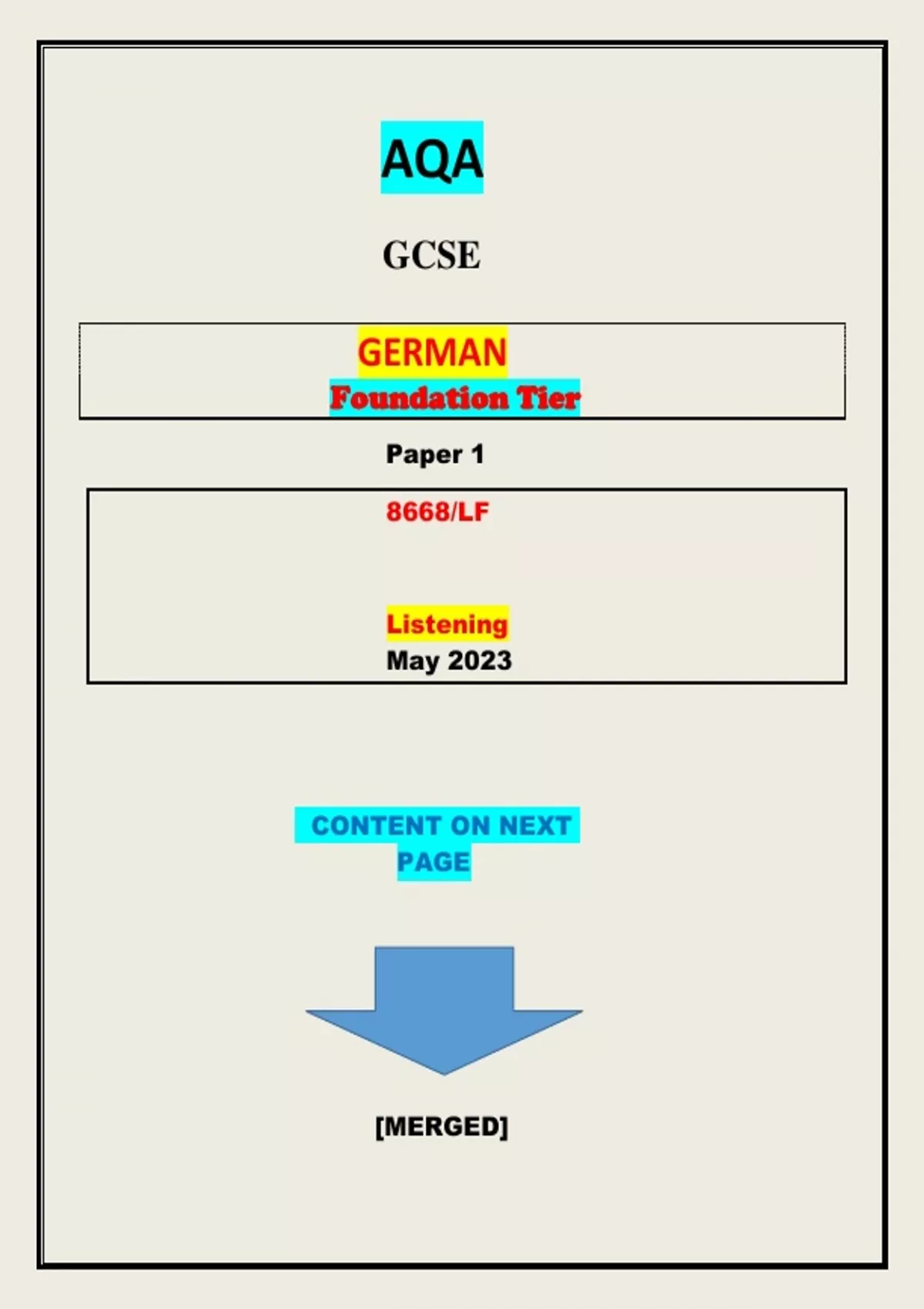 AQA GCSE GERMAN HIGHER TIER & FOUNDATION TIER QUESIONS AND MARKING SCHEME MERGED