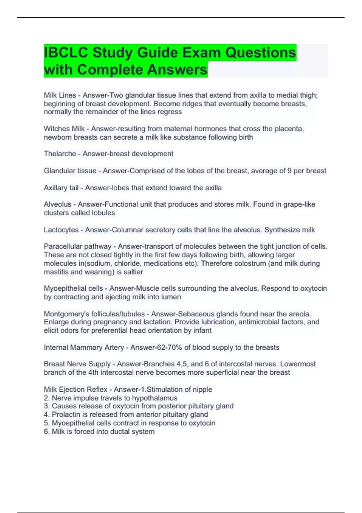 IBCLC PRACTICE EXAM QUESTIONS WITH VERIFIED ANSWERS 2 Exam (elaborations) IBCLC - BREASTMILK COMPOSITION AND FUNCTION EXAM QUESTIONS WITH COMPLETE SOLUTIONS 3 Exam (elaborations) IBCLC 2.0 EXAM QUESTIONS WITH CORRECT DETAILED AND VERIFIED ANSWERS 4 Exam (elaborations) IBCLC 21’ Exam Questions with Correct Detailed Answers 5 Exam (elaborations)