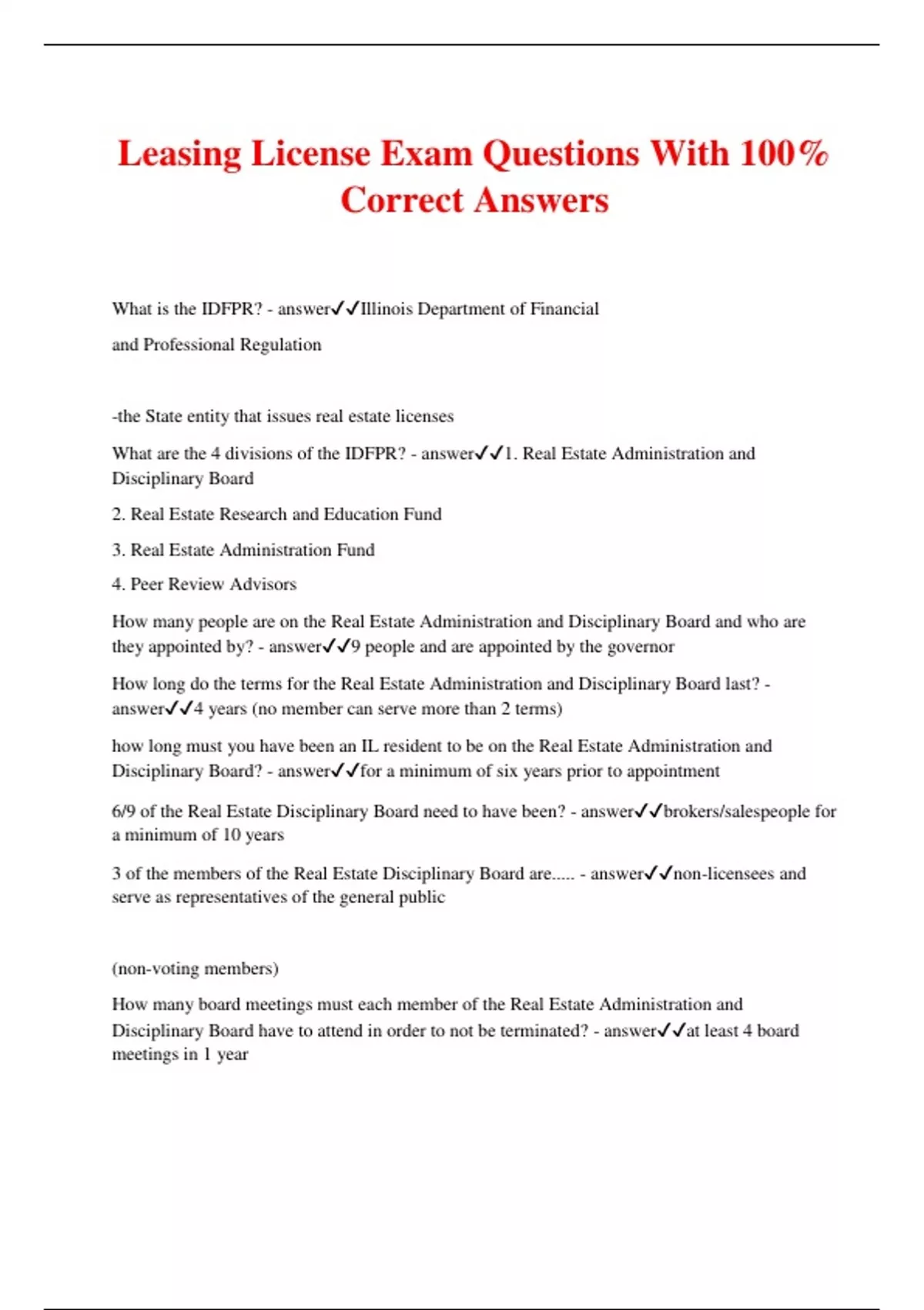 Illinois Leasing Exam Questions With 100% Correct Answers