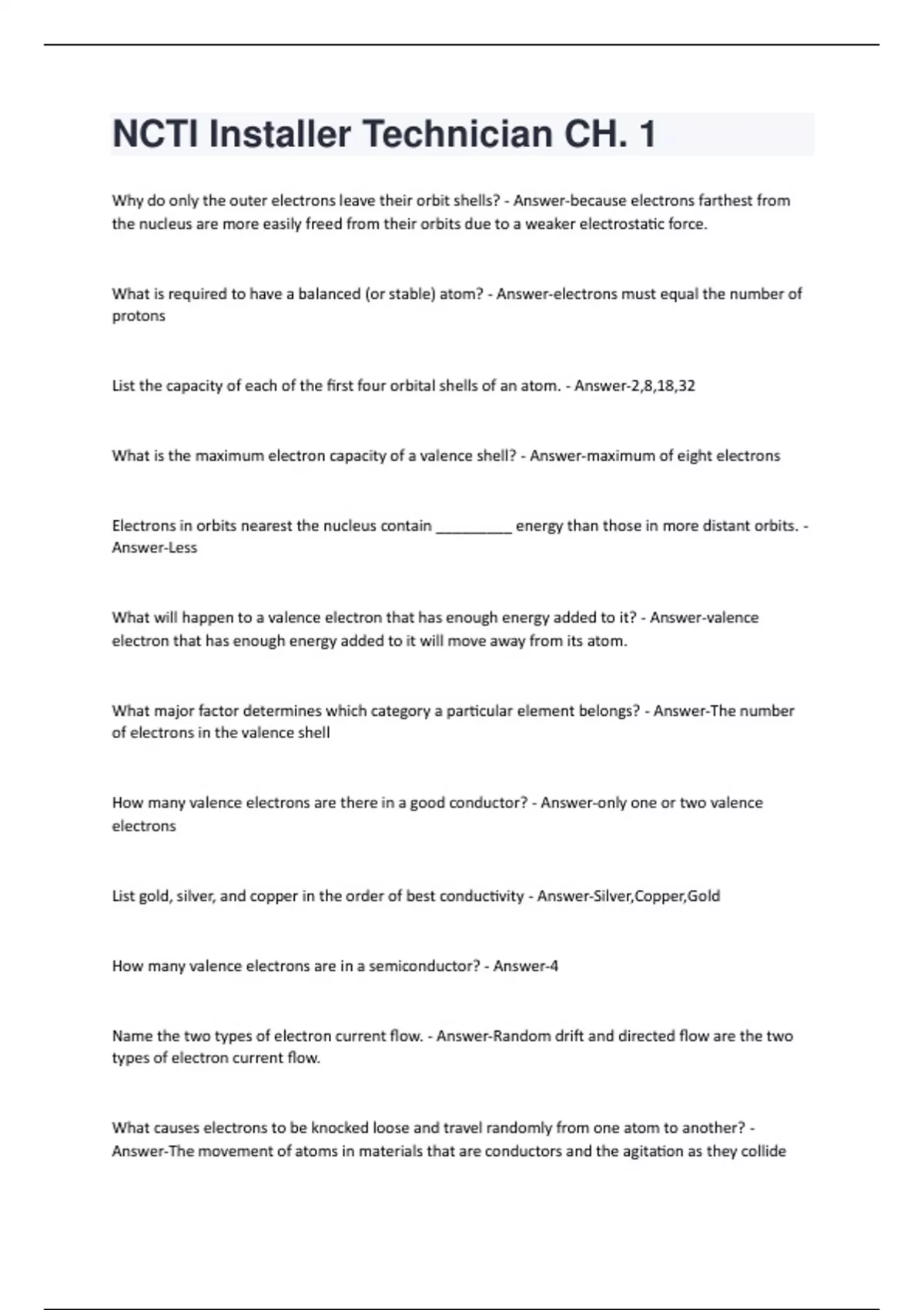 NCTI - Installer Book Questions And Answers Rated 100% Correct!!