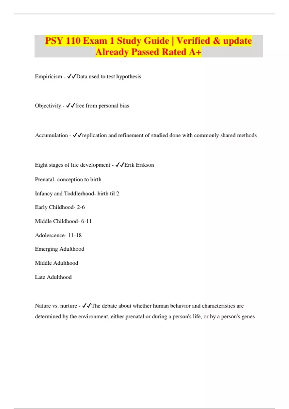PSY 110 Exam 1 Study Guide | Verified & update Already Passed Rated A+