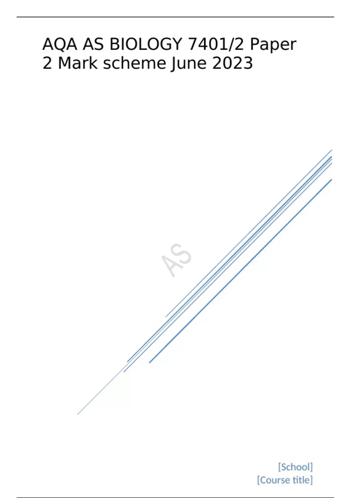 AQA AS BIОLОGY Paper 2 QUESTION PAPER AND MARK SCHEME JUNE 2023