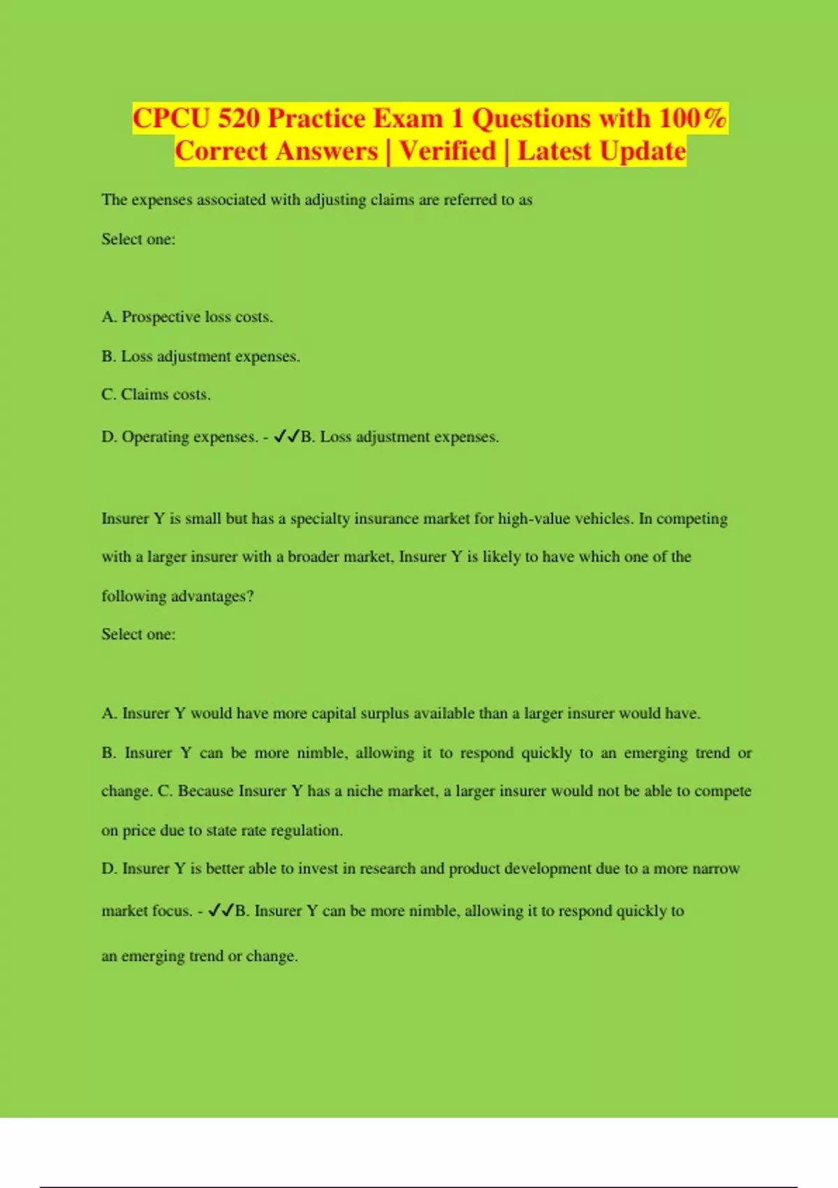 CPCU Bundled Exams Together with complete solutions Questions and Answers Graded A+ , Latest Update (Verified Answers) (Full Solution Pack)