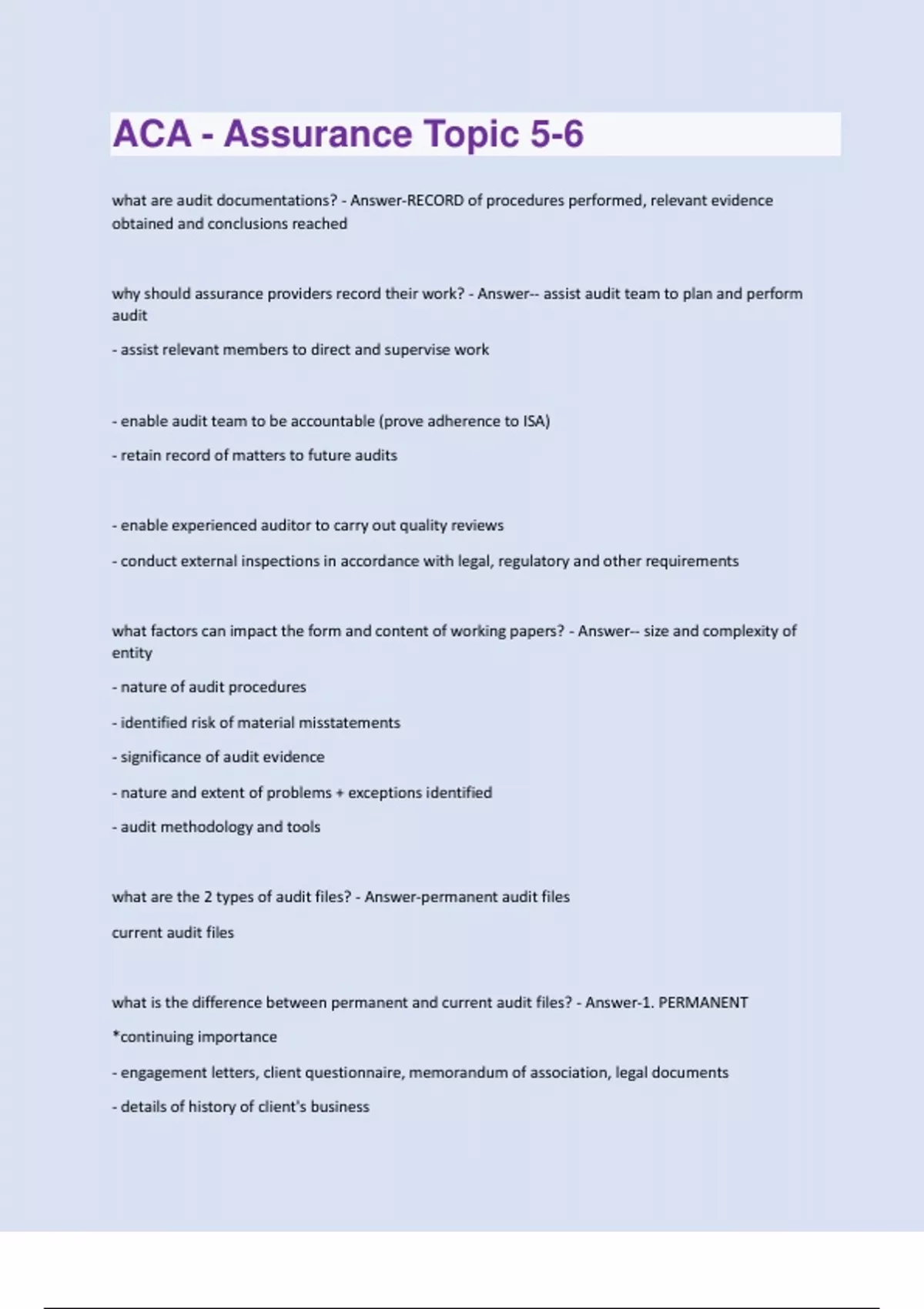 ACA - Assurance Topic 5-6 Questions With 100% Correct Answers.