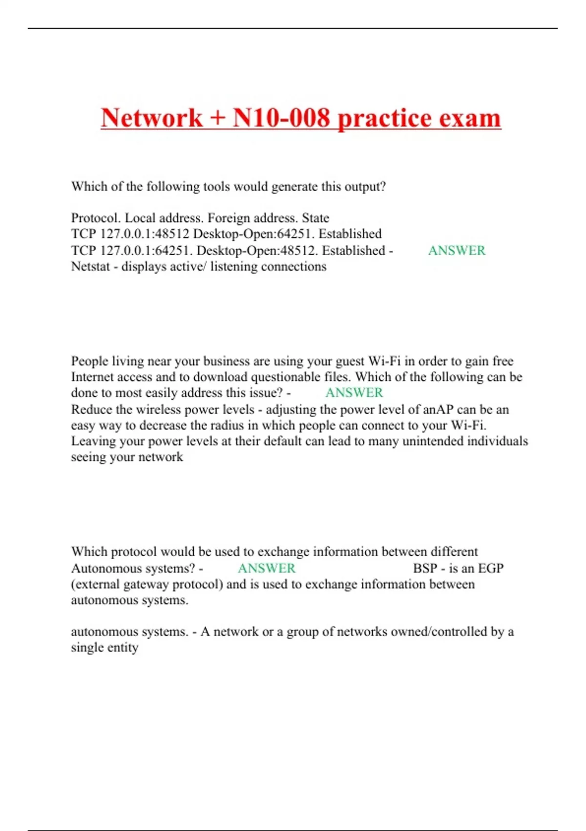 Exam (elaborations) N10-008 FINAL EXAM 2024/25 Exam (elaborations) Network+ N10-008 All-in-One Exam Guide Exam (elaborations) Network + N10-008 practice exam