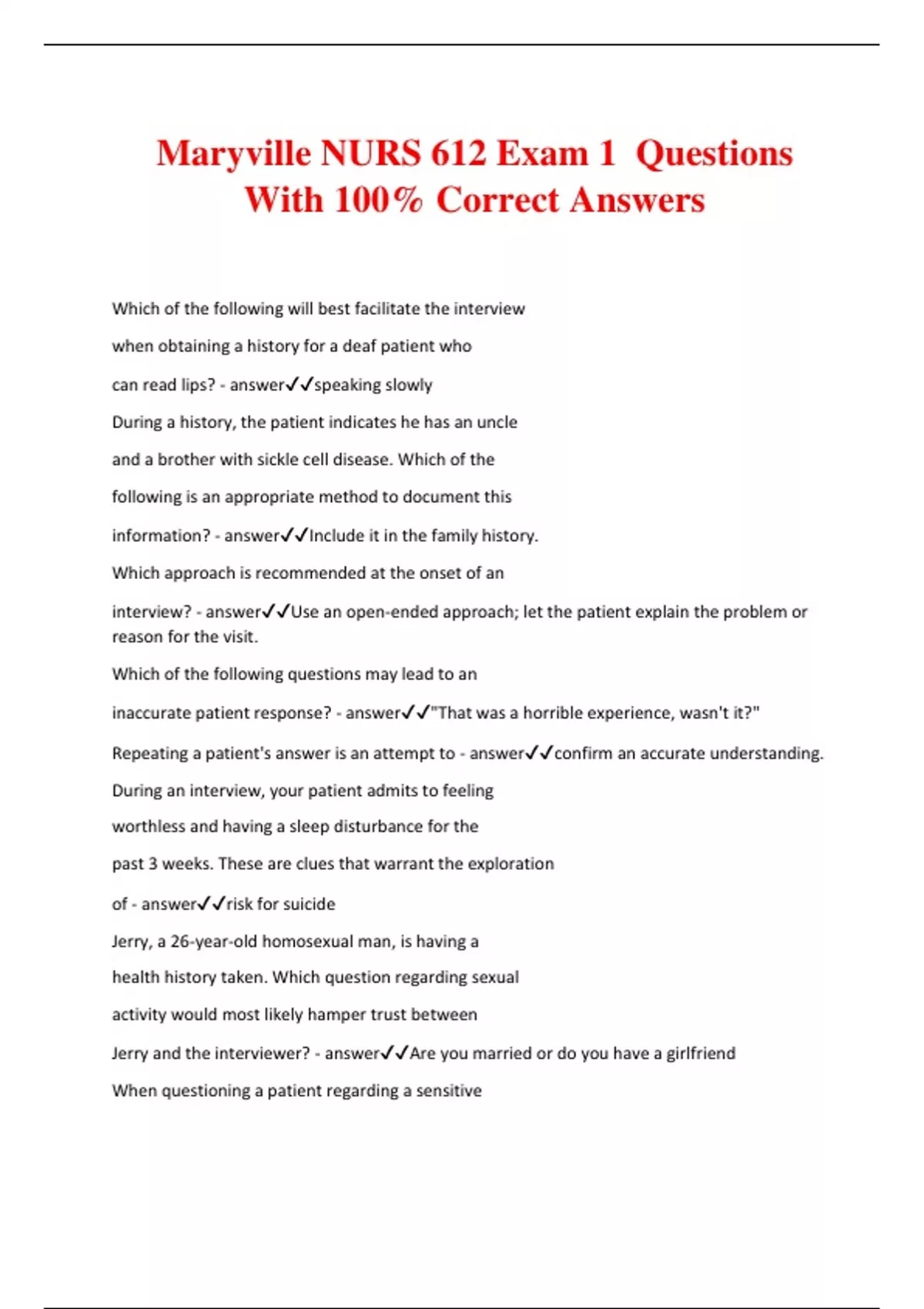 NURS 612/ Maryville NURS 612 Exam Package Deal With Complete Solutions. Verified And Updated